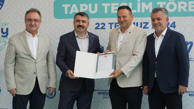 Yıldırım Belediyesi, Değirmenönü Cumalıkızık, Karapınar, Yunusemre, Sinandede, Arabayatağı, Mevlana ve Mimarsinan mahallelerinden sonra 37 hektarlık alanda gerçekleştirilen imar uygulaması neticesinde bin 237 hak sahibine resmi imar parselli tapuları teslim etti. Demetevler Spor Tesisi'nde düzenlenen tapu dağıtım törenine Yıldırım Belediye Başkanı Oktay Yılmaz'ın yanı sıra, Yıldırım İlçe Emniyet Müdürü Sakip Yalta, AK Parti İl Başkan Yardımcısı Ufuk Ay, Demetevler Mahallesi Muhtarı Ali Orhan ve hak sahibi vatandaşlar katıldı.2019 yılından bu yana 15 bin bin tapu dağıtıldığını belirten Yıldırım Belediye Başkanı Oktay Yılmaz, "Yıldırım Belediyesi sınırlarımız içerisinde 2019 yılından bu yana Değirmenönü Cumalıkızık, Karapınar, Yunusemre, Sinandede, Arabayatağı, Mevlana, Mimarsinan mahallelerinde yapılan imar uygulaması çalışmaları sonucu 15 bin tapu dağıtımı gerçekleştirdik. Demetevler Mahallesi 3. Şuyulandırma Bölgesi olarak adlandırdığımız bölgede 2007 yılında yapılan imar uygulaması açılan davalar sonucunda iptal edilmiş ve söz konusu bölgede 2008 yılından bu yana ruhsat verilememektedir" diye konuştu.Demetevler pazar alanının artık kapalı pazar alanı olacağını söyleyen Başkan Yılmaz, "Demetevler Mahallesi'nin büyük bir kısmını kapsayan bölgenin toplamda bin 237 tapu malikinin olduğu 370 bin metrekarelik alanda, bin 149 adet parselin yer aldığı şuyulandırma sınırı dahilinde imar uygulaması işlemlerini tapuda tescil ettirerek tamamlamış bulunmaktayız. Uygulama yaptığımız 370 bin metrekarelik alanda yapılan imar uygulaması işlemleri sonrasında bölgede 162 bin metrekarelik yapı adası, 10 bin 400 metrekarelik yeşil alan, 28 bin 400 metrekarelik eğitim tesis alanı, 3 bin 200 metrekarelik sağlık tesis alanı, 6 bin 800 metrekarelik spor tesis alanı elde ettik. Sadece tapu ve imar çalışmaları olmadı. Bölgede dere ıslahını yapacağız diye söz vermiştik. Bursa Büyükşehir Belediyesi ve BUSKİ ile bir protokol yaptık ve dere ıslahını gerçekleştiriyoruz. Bu yıl içerisinde de tamamlanmış olacak" ifadelerini kullandı.