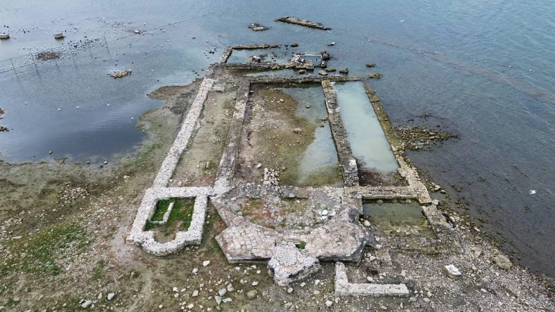 İznik Gölü'nde yaşanan su çekilmesi nedeniyle, 2014'te keşfedilen batık bazilika kalıntısının artık tamamen görünür hale geldi.