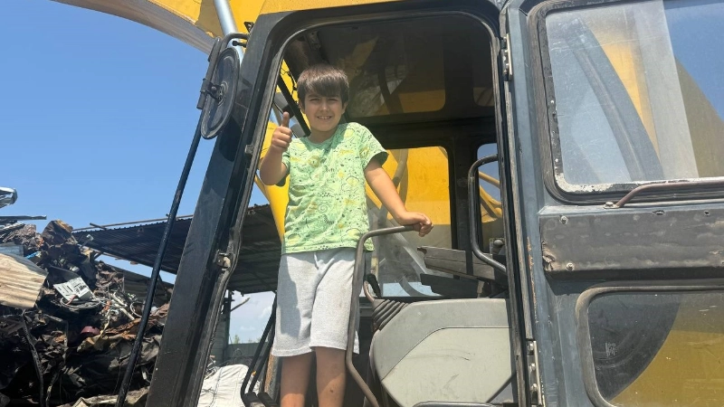 İznik ilçesinde geri dönüşüm şirketi sahibi Serdal Dikçal, 7 yaşındaki oğlu olan Talip Serdar Dikçal'a ekskavatör, forklift gibi iş makinelerini kullanmasını öğretti. Oyuncağı ile oynar gibi dev iş makinesini kullanan ve isminin talip olduğu belirtilen çocuk hurdaları ve Kağıt depolama işlerinde iş makinesi kullanıyor. Çalışma esnası sırasında çalışan işçilerin rahatlıkları dikkat çekerken, tedirgin olmadıkları görüldü. Henüz ilköğretim 2.sınıf öğrencisi Talip ise tıpkı bilgisayar başında joystick ile oynar gibi iş makinesini kumanda ederek kullanıyor. “Bu işi çok seviyorum, sabah erkenden uyanıp babamla işe gitmek için sabırsızlanıyorum. Büyüdüğümde vinç operatörü olmak istiyorum” dedi.