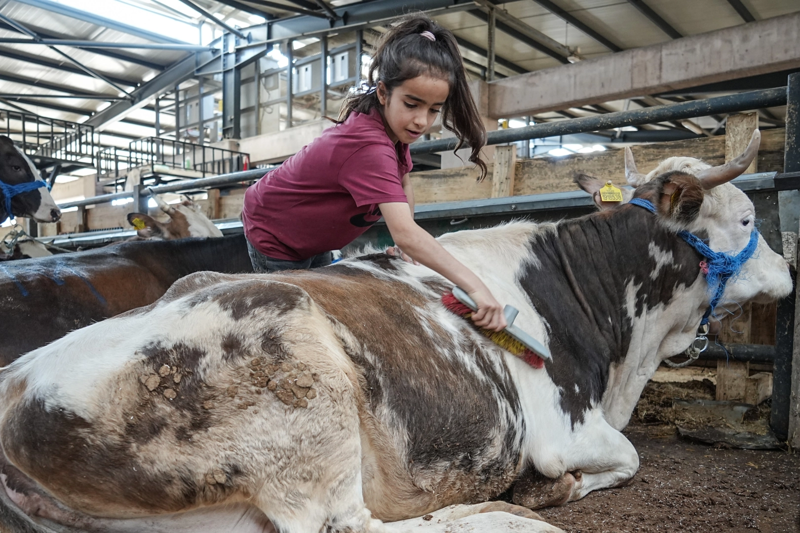 Babasına yardım için 1350 kilometre mesafeden Bursa'ya gelen Ecrin Özmen, "Oyun oynayacağıma babama yardım ederim. Altını temizliyoruz, tımar yapıyoruz ve saman dolduruyoruz. Burada oyun oynamıyorum sadece yardım ediyorum. Babamlar Muş'tan Bursa'ya yola çıkarken bende tırın arkasına atladım o şekilde geldim" diye konuştu.