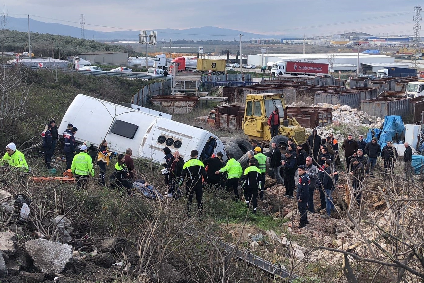 Olay, Bursa'nın Gemlik ilçesi Serbest Bölge girişinde meydana geldi. Edinilen bilgiye göre 41 TK 262 plakalı tır, Gemlik Serbest Bölgeye girişinde hızını ayarlayamayınca 16 S 7137 plakalı Temsa marka servis otobüsüne arkadan çarptı. İşçileri topladıktan sonra fabrikaya doğru yola çıkan otobüs şoförü, çarpmanın etkisiyle direksiyon hakimiyetini kaybetti. Yaklaşık 20 metre şarampole yuvarlanan otobüste, can pazarı yaşandı. Vatandaşların ihbarıyla çok sayıda ambulans ve kurtarma ekibi bölgeye sevk edildi. Yaralılar, vatandaşların da yardımıyla otobüsten çıkarıldı. Kaza sonrasında Gemlik Cumhuriyet Başsavcılığının talimatıyla, tır şoförü F.A. gözaltına alındı. Kazada yaralanan 9 işçiden 2'sinin hayati tehlikesinin devam ettiği öğrenildi.