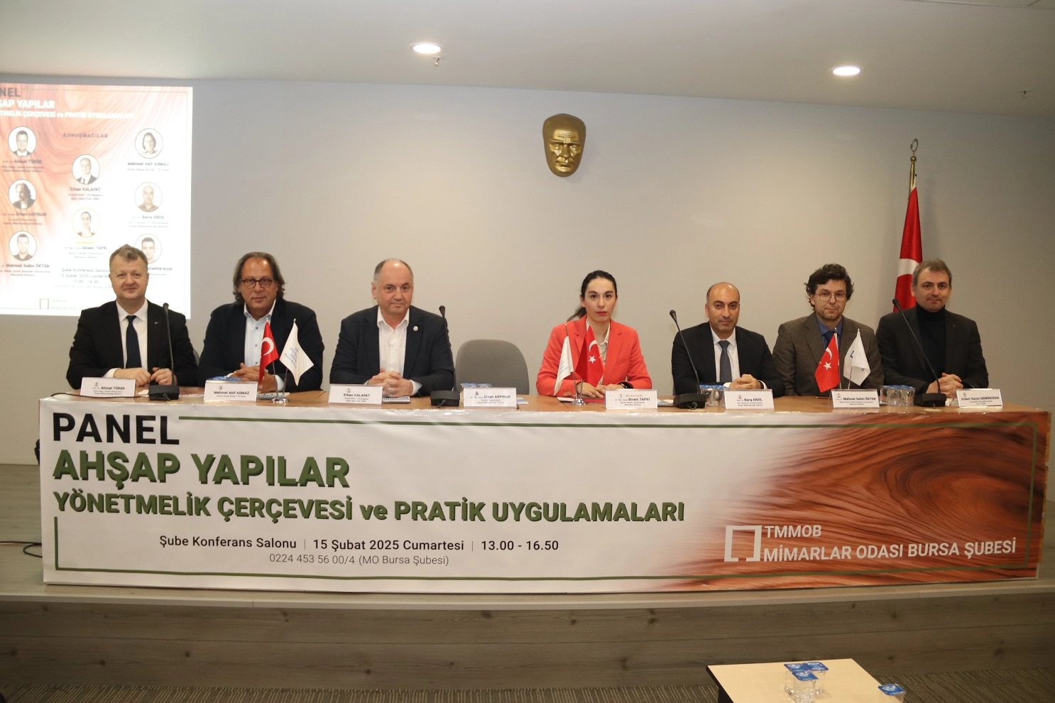 Bursa Teknik Üniversitesi Mimarlık Bölümü Dr. Öğretim Üyesi Sinem Tapkı’nın moderatörlüğünde gerçekleştirilen panelde; ODTÜ İnşaat Mühendisliği Bölümü’nden Prof. Dr. Ahmet Türer, Ulusal Ahşap Birliği Yönetim Kurulu Üyesi Mehmet Akif Asmaz, AHŞAPDER Yönetim Kurulu Başkanı Ağaç İşleri Endüstri Mühendisi Erkan Kalafat, Kocaeli Üniversitesi İnşaat Mühendisliği Bölümü’nden Dr. Öğretim Üyesi Erkan Akpınar, Van Yüzüncü Yıl Üniversitesi İnşaat Mühendisliği Bölümü’nden Doç. Dr. Barış Erdil, Mimar Sinan Güzel Sanatlar Üniversitesi Mimarlık Bölümü’nden Doç. Dr. Mehmet Selim Ökten ve Yapıstatik Proje Mühendislik firmasından İnşaat Yüksek Mühendisi Erdem Kazım Demirkıran konuşmacı olarak yer aldı.
