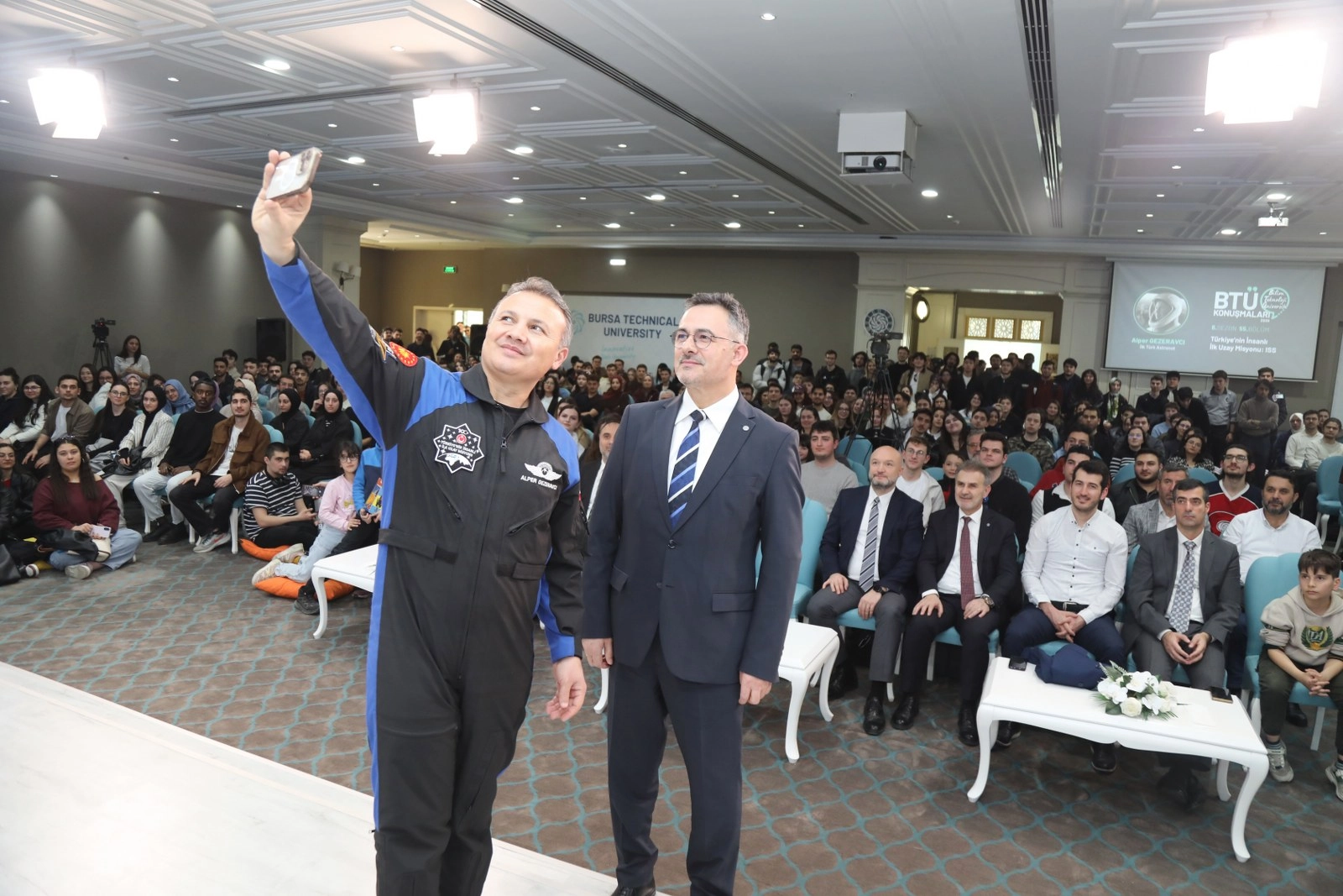 Türkiye’nin ilk astronotu Alper Gezeravcı, Bursa Teknik Üniversitesinde öğrencilerle buluşarak Türkiye’nin insanlı ilk uzay misyonu kapsamında 22 gün süren uzay yolculuğunu ve Milli Uzay Programı kapsamındaki hedefleri anlattı. Uluslararası Uzay İstasyonu’nda gerçekleştirilen bilimsel deneylerden, eğitim sürecine kadar pek çok detayı paylaşan Gezeravcı, gençlere; “Bu bir varış değil başlangıç; bundan sonra bu hikâyeyi siz yazacaksınız” mesajı verdi.