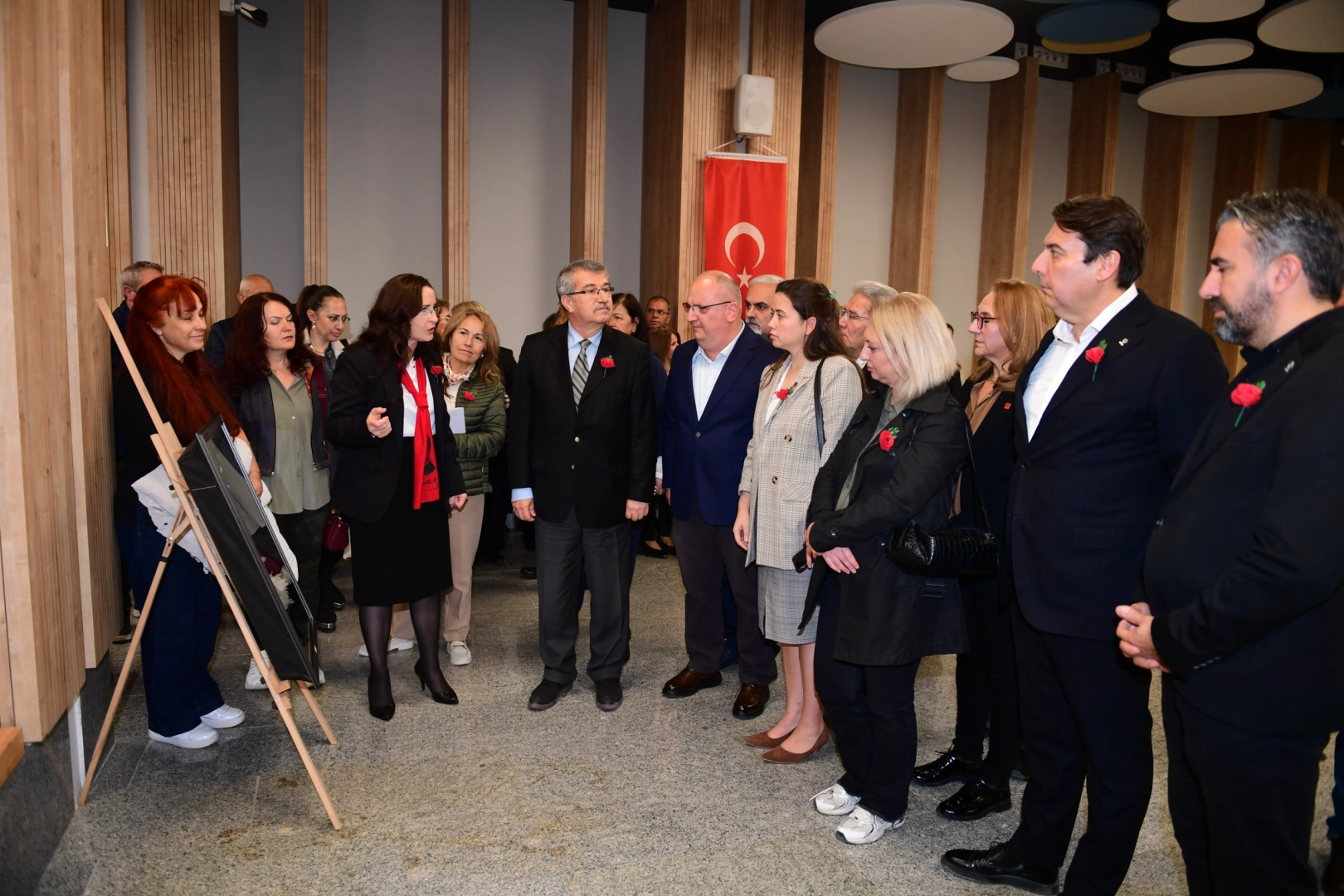 Kurdela kesiminin ardından sergiyi gezen protokol üyeleri, eserleri dikkat ile incelerken Ulu Önder Mustafa Kemal Atatürk’ü saygı ve minnet ile andı. Sergi hakkında bilgiler veren Dilber Demirkıran, 18 eserin bulunduğunu ve satıştan elde edilecek gelirin öğrencilerin bursunda kullanılacağını belirtti. Serginin ardından Bursa Uludağ Üniversitesi Doç. Dr. Hacer Karabağ Arslan, ‘Balkanlar’dan Anadolu’ya: Atatürk’ün Liderlik İnşası’ adlı söyleşi ile katılımcılara bilgilendirmelerde bulundu. Söyleşide Atatürk’ün Balkanlar coğrafyasından Anadolu’ya dek uzanan milli mücadele ruhuna ışık tutan Doç. Dr. Hacer Karabağ Arslan, Cumhuriyetin ilanı ve sonrasına ilişkin anılara perde açarak, Atatürk’ün liderliğine vurgu yaptı.