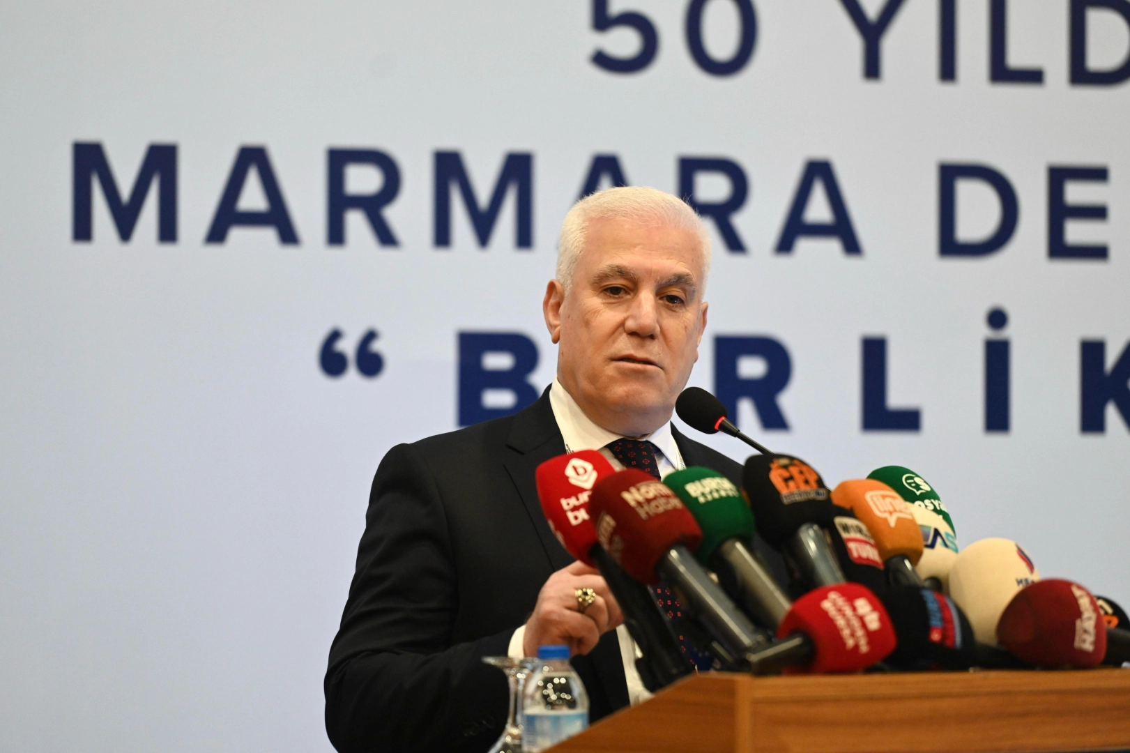 Marmara Belediyeler Birliği, kuruluşunun 50. yıl dönümü kapsamında yıl boyunca Marmara Denizi’ni odağına alacak bir dizi etkinlik düzenleyecek. Etkinlik dizisinin ilki olan ‘50 Yıldır Marmara Denizi İçin Birlikte’ programı, Bursa Büyükşehir Belediyesi’nin ev sahipliğinde Merinos Atatürk Kongre Kültür Merkezi’nde yapıldı. Programa, MBB ve Bursa Büyükşehir Belediye Başkanı Mustafa Bozbey, Bilecik Belediye Başkanı Melek Mızrak Subaşı, ilçe belediye başkanları, Marmara Belediyeler Birliği Genel Sekreteri Dr. Cemil Arslan, MBB Bilim Kurulu üyeleri, Büyükşehir Belediyesi genel sekreter yardımcıları, Büyükşehir Belediyesi bürokratları, kamu kurumlarının temsilcileri ve muhtarlar katıldı. “Kaybettiğimiz değer, hepimizin değeridir” MBB ve Bursa Büyükşehir Belediye Başkanı Mustafa Bozbey, Marmara Bölgesi’nin ortak sorunlarına çözüm bulmak için kurulan Marmara Belediyeler Birliği’nin 50. kuruluş yıl dönümünü kutlamanın mutluluğunu yaşadıklarını söyledi. Birliğin kuruluşundan bu yana emeği geçenlere teşekkür eden Başkan Mustafa Bozbey, 50 yıl önceki sorunların artarak devam ettiğini hatırlattı. Onca çabaya, dayanışmaya ve öngörülere rağmen 2021 yılında müsilaj sorununun yaşandığını belirten Başkan Bozbey, “Müsilaj sorunu devam edecek gibi görünüyor. Bu yüzden yıl içerisinde yapılacak toplantıları önemsiyoruz. Marmara’ya yüklediğimiz bunca yük, bence artık yeter. Bu yükü Marmara ve Marmara Denizi kaldıramaz. Yerel ve genel tüm yetkililerin bu konuda acil önlem alması ve sorunun çözümü noktasında adımlar atması gerekiyor. Bu yıl yapılacak toplantılarda alınacak kararların uygulanmasını takip etmek hepimizin sorumluluğu olmalıdır. Kaybettiğimiz değer, hepimizin değeridir. Marmara Denizi, tabiri caizse ‘Ben ölüyorum, ben can çekişiyorum. Bir şeyler yapın. Tedbirleri etkili bir şekilde alın’ diyor. Ancak biz hala adım attığımızda karşımıza çıkan engelleri aşamıyoruz. Yerel ve genel idarenin kol kola girerek, yan yana durarak, çözüm ortağı olarak sorunları aşabileceğine inanıyorum” diye konuştu. “Denizimiz nefes alamaz hale geldi” Marmara’yı mavisi de temiz, yeşili de temiz istediklerinin altını çizen Başkan Bozbey, kirliliğe karşı mücadelede bilim ve iş birliğinden yararlanarak somut adımlar atacaklarını ve süreci kararlılıkla takip edeceklerini ifade etti. Marmara Denizi’nin bir yaşam kaynağı olduğunu dile getiren Başkan Bozbey, “Yıllardır süregelen ihmaller, yanlış politikalar ve denetimsizlikler yüzünden denizimiz nefes alamaz hale geldi. Marmara Denizi geri dönülemez bir felakete sürükleniyor. Bu krizi durdurmak bizim elimizde. Sorumluluk bilinciyle hareket ederek ortak akılla ve bilimsel yöntemlerle kalıcı çözümler üretmeliyiz. Marmara’nın çığlığını duymazdan gelemeyiz. Marmara Denizi olmadan bu bölgenin ekonomisi de kültürü de yaşam kalitesi de sürdürülemez. Marmara Denizi’ni korumak sadece çevresel bir mesele değil, insani bir sorumluluktur. 30 milyondan fazla insana ev sahipliği yapan bir bölgenin merkezinde yer alan Marmara Denizi’ni yok sayma veya görmezden gelme gibi bir seçeneğimiz yok. Amacımız yalnızca sorunları ve çözümleri konuşmak değil, aynı zamanda somut ve etkili yol haritaları oluşturarak harekete geçmektir” dedi. “Marmara Denizi’ne her gün 4.7 milyon metreküp atık su deşarj ediliyor” 2021 yılında herkesi etkileyen müsilaj sorunu ile karşı karşıya kaldıklarını hatırlatan Başkan Bozbey, bu sorunun denizin artık kirliliği kaldıramadığını, ekosisteminin yok olma noktasına geldiğini gösterdiğini dile getirdi. Müsilajın sadece bir sonuç ve büyük bir ekolojik çöküşün habercisi olduğunu söyleyen Başkan Bozbey, Marmara Denizi’nin kirlilikle, bilinçsiz sanayileşmeyle ve yetersiz atık yönetimiyle mücadele ettiğini söyledi. Marmara Denizi’nin "Beni daha fazla kirletmeyin!" dediğini belirten Başkan Bozbey, 2021’de yaşanan aşırı müsilaj vakasının ardından dönemin Marmara Belediyeler Birliği Başkanı ve Kocaeli Büyükşehir Belediye Başkanı Tahir Büyükakın’a birlik adına attığı adımlardan dolayı teşekkür etti. Marmara Denizi Eylem Planı’nın bu süreçte önemli bir dönüm noktası olduğunu anlatan Başkan Bozbey, “Marmara Belediyeler Birliği bünyesinde kurulan bilim ve teknik kurulunun çalışmaları titizlikle sürmektedir. Toplamda 22 maddeden oluşan eylem planının, 19 maddesi gerçekleşti. 3 madde için ise hala adımların atılamadığını görüyoruz. Bunlar; kentsel atıksu arıtma tesislerinin tamamının ileri biyolojik tesislere dönüştürülmesi, tarımsal kirliliğin önüne geçmek üzere yapay sulak alanların oluşturulması, kamu-özel iş birliği modelinin atıksu altyapı projelerinde uygulanmasına yönelik idari hususlardır. Hepimize düşen en önemli görev, kalan üç maddenin uygulanması için kararlı ve etkili adımlar atmaktır. Aksi takdirde, bugünden harekete geçmezsek yarın çok geç olacak. Atık su yönetiminin etkili bir şekilde kontrol altına alınması gerekiyor. Akademik çalışmalardan elde edilen verilere göre Marmara Denizi’ne her gün 4.7 milyon metreküp atık su deşarj ediliyor. Bu atıkların sadece yarısı fiziksel arıtmadan geçirilerek denize bırakılıyor. Her gün milyonlarca metreküp kirli su, Marmara’nın oksijen seviyesini hızla düşürüyor. Bu gidişata dur demeliyiz. Süreci de sürdürülebilir hale getirmeliyiz” diye konuştu. “Marmara Denizi gelecek nesillerin de mirasıdır” İleri biyolojik arıtma tesislerinin kurulumuna, Çevre, Şehircilik ve İklim Değişikliği Bakanlığı’nın normları ve düzenlemeleri çerçevesinde büyük bir hızla devam edilmesi gerektiğini vurgulayan Başkan Bozbey, şunla
