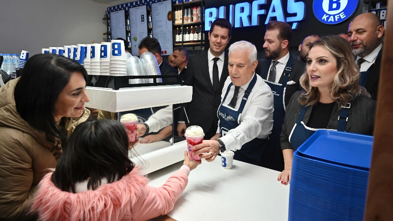Konuşmaların ardından Başkan Mustafa Bozbey ve protokol üyeleri, Burfaş B Kafe’de barista önlüklerini giyerek vatandaşlara kahve ikramında bulundu.