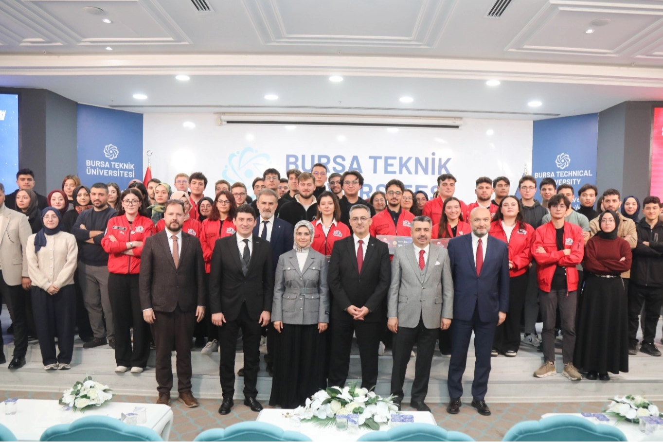 Ulusal ve uluslararası yarışmalarda elde ettikleri başarılarla dikkat çeken Bursa Teknik Üniversitesi (BTÜ) öğrencileri, TEKNOFEST Teknoloji Yarışmaları’nda da her yıl önemli dereceler kazanmayı sürdürüyor. 2025 TEKNOFEST Teknoloji Yarışmaları’nda da pek çok kategoride finale kalma başarısı gösteren ve dereceler elde eden BTÜ öğrenci takımları, bu yıl Teknoloji Yarışmaları Koordinatörlüğü tarafından ilk kez düzenlenen “TEKNOFEST Yarışma Sürecini 5 Dakikada Anlat” etkinliğinde deneyimlerini paylaşmak üzere bir araya geldi. Mimar Sinan Yerleşkesi Turkuaz Salon’da gerçekleşen etkinliğe; BTÜ Rektörü Prof. Dr. Naci Çağlar, T3 Vakfı Yönetim Kurulu Başkanı ve Genel Müdürü Dr. Elvan Kuzucu Hıdır, Yıldırım Belediye Başkanı Oktay Yılmaz, Anadolu Aslanları İş Adamları Derneği (ASKON) Bursa Şube Başkanı Emre Yıldız, akademisyenler ve öğrenciler katıldı.