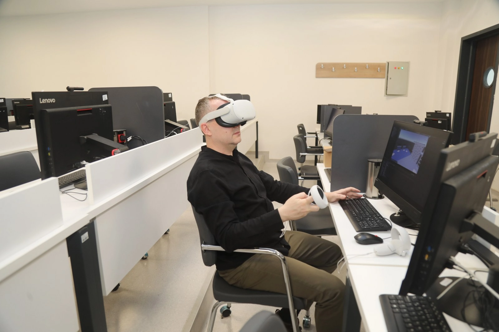 Forklift ve reachtruck operatörlerinin eğitimine yönelik olan SkillXR sistemi; gerçek forklift kokpiti, 2DoF hareket platformu, Meta Quest 3 VR gözlüğü, çoklu duyusal geri bildirim (görsel, işitsel, dokunsal) ve eğitmen kontrol paneli ile donatıldı. Bu sayede operatör adayları, kas hafızası gelişimini destekleyen, endüstriyel ortamlara birebir benzeyen bir eğitim deneyimi kazanıyor. Eğitim senaryoları, güvenlik kontrollerinden acil durum prosedürlerine, yük taşıma ve navigasyon görevlerinden performans analizine kadar tüm aşamaları kapsıyor.