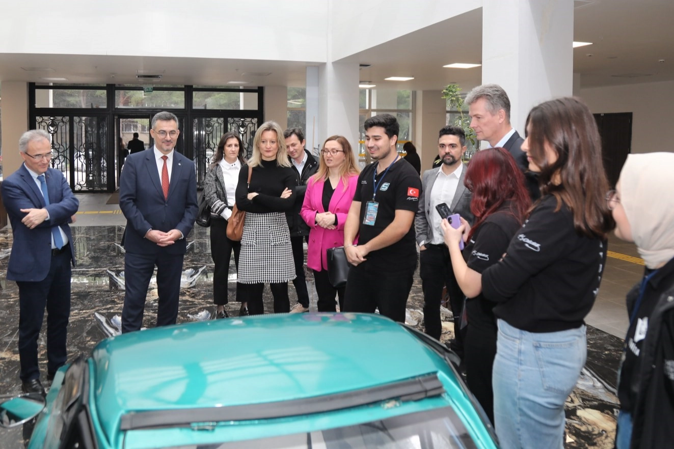 Bosch Bursa üst Yönetiminden BTÜ laboratuvarlarına ziyaret Toplantı, Elektrikli Taşıtlar Uygulama ve Araştırma Merkezi Müdürü Doç. Dr. Gökay Bayrak’ın, hidrojen enerjisi sistemleri test laboratuvarı çalışmaları ve BTÜ ATAK-H hidromobilöğrenci takımı hakkında yaptığı sunum ile devam etti. RektörlükLokali’nde gerçekleştirilen toplantının ardından Bosch Otomasyon Eğitim Seti Hibe Teslim Töreni ve Hidrojen Enerjili Taşıt Sistemleri Laboratuvarı açılışı gerçekleştirildi. Saha ziyareti, BTU ATAK-H Hidromobil aracının incelenmesiyle son buldu. Toplantıya; Rektör Yardımcıları Prof. Dr. Beyhan Bayhan, Prof. Dr. Sinan Uyanık ve Prof. Dr. Barış Tamer Tonguç, Mühendislik ve Doğa Bilimleri Fakültesi Dekanı Prof. Dr. Hakan Gürkan, Elektrikli Taşıtlar Uygulama ve Araştırma Merkezi Müdürü Doç. Dr. Gökay Bayrak, BUKAGEM Müdür Yardımcısı Dr. Öğretim Üyesi Mehmet Onur Genç, Bosch Güç Çözümleri Bursa Fabrikası Endüstriyelleştirme Alan Yöneticisi Yıldırım Arslan, Ürün Endüstriyelleştirme Direktörü Onur Ozan Çilsal, İnsan Kaynakları Alan Yöneticisi Zeynep Yıldız, İnsan Kaynakları Direktörü Aknur Ak ve İnsan Kaynakları Sorumlusu Ece Tüt de katıldı.