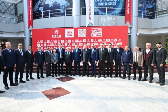 BTSO Hizmet Binası’nda gerçekleşen ziyarete BTSO Yönetim Kurulu Başkanı İbrahim Burkay, Meclis Başkanı Ali Uğur, Yönetim Kurulu, Meclis Başkanlık Divanı ve KOBİ Konseyi üyeleri ev sahipliği yaptı. BTSO Yönetim Kurulu Başkanı İbrahim Burkay, Mustafa Bozbey ile 1/100 binlik yeni çevre düzeni planı başta olmak olmak üzere sanayi ve ticaret dönüşümünü sağlayacak birçok projeyi değerlendirme imkanı bulduklarını söyledi.