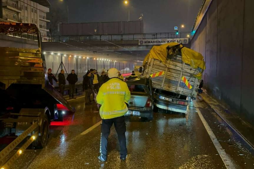 Kaza, 17 Şubat günü saat 21.00 sıralarında merkez Yıldırım ilçesi Ankara Yolu Caddesi Mimar Sinan Alt Geçidi’nde meydana geldi. Edinilen bilgiye göre, yağış sebebiyle kayganlaşan yolda bir kamyon ile üç otomobil zincirleme kaza yaptı. Otomobillerden biri, kamyonun altına girerek durabildi.