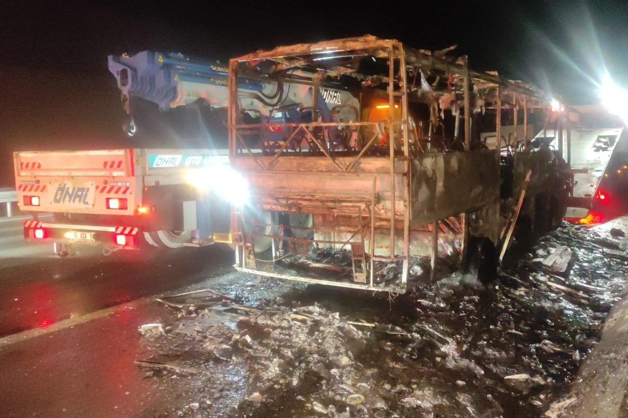 Olay, saat 21.30 sıralarında Gebze-Orhangazi-İzmir Otoyolu Gemlik Viyadüğü yakınlarında meydana geldi. Edinilen bilgiye göre, Bursa istikametinden İstanbul istikametine seyir halinde olan ve içinde 35 kişilik turist kafilesinin bulunduğu İ.Ç. (41) idaresindeki 34 BU 6728 plakalı yolcu otobüsünün motorundan birden dumanlar yükselmeye başladı. Dumanları fark eden sürücü, otobüsü emniyet şeridine çekti. Otobüsün kapılarını açan sürücü, 35 Suudi turisti otobüsten tahliye etti. Kısa süre sonra otobüs alev topuna döndü. İhbar üzerine olay yerine jandarma ve itfaiye ekipleri sevk edildi. Jandarma ekipleri yangın sebebiyle yolu bir süreliğine kapatırken, yangın itfaiye ekiplerinin müdahalesiyle söndürüldü. Otobüsün söndürülmesi ile beraber trafik kontrollü bir şekilde açıldı. Yaşanan olayda kimse yara almazken, alevlere teslim olan otobüs vinç yardımıyla bulunduğu yerden kaldırıldı. Jandarma ekipleri olayla ilgili inceleme başlattı.