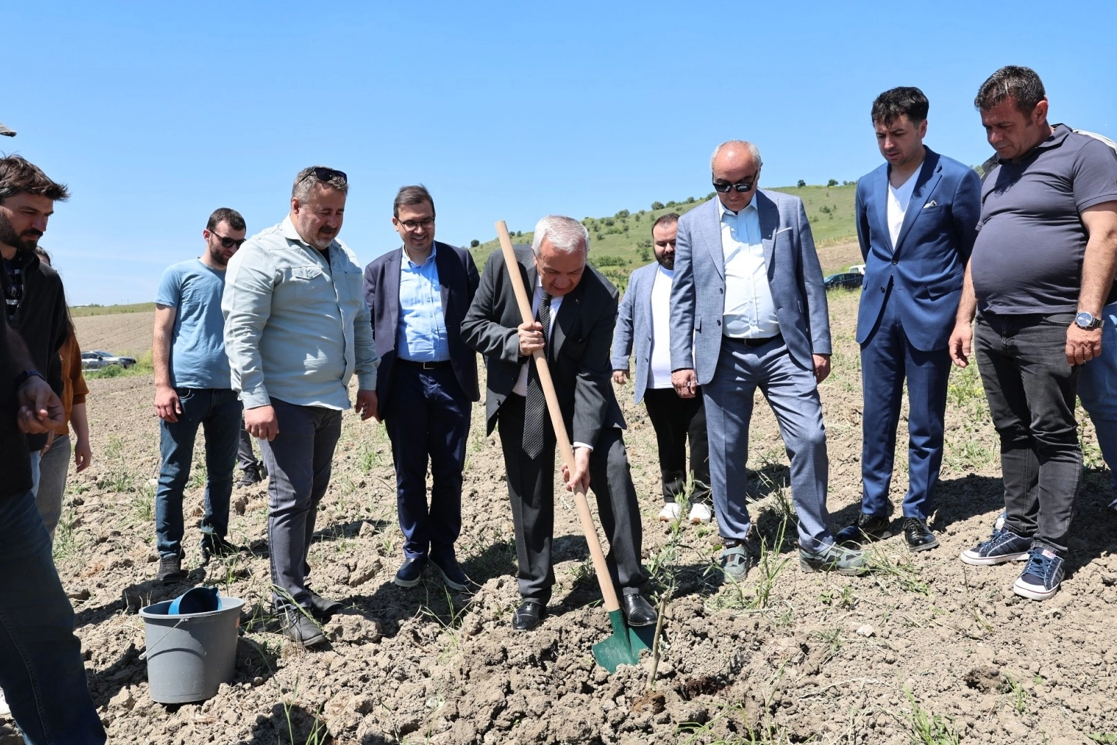 Nilüfer Belediyesi, tarım alanlarının korunması, üretimin teşvik edilmesi, temiz gıdaya erişim alanındaki projelerine bir yenisini daha ekledi. Belediyenin atıl durumdaki arazilerini tarımsal üretime ayıran Nilüfer Belediyesi, Konaklı Mahallesi’nde 23 dekarlık araziye 800 zeytin fidanı dikti. Fidan dikiminde, Nilüfer Belediye Başkanı Şadi Özdemir’in yanı sıra Nilüfer Belediye Başkan Yardımcıları, Nilüfer Belediye Meclis Üyeleri, Nilüfer Tarımsal Kalkınma Kooperatifi (NİLKOOP) Başkanı Süleyman Ayyılmaz ve Konaklı Mahalle Muhtarı Hasan Tosun da yer aldı. Başkan Şadi Özdemir de zeytin fidanı dikti. Fidana ilk can suyunu veren Başkan Şadi Özdemir, üretimin bereketli olmasını diledi. Nilüfer Belediye Başkanı Şadi Özdemir, Bursa’nın zeytin üretiminde Türkiye’de 6’ıncı sırada yer aldığını söyledi. Nilüfer’in de önemli üretim merkezlerinden biri olduğunu dile getiren Başkan Şadi Özdemir, "Zeytin hem barışın hem de bereketin simgesi. Nilüfer’de üretilen zeytinlerin yüzde 40’ı Konaklı’da üretiliyor. Biz de burada atıl durumdaki arazimize zeytin fidanlarımızı dikiyoruz. Bu şekilde üretimi de destekliyoruz" dedi. Nilüfer’in bereketli topraklarında tarımı destekleyici politikalar üretmeye devam edeceklerini anlatan Başkan Şadi Özdemir, "Yeni üretim modelleri deniyoruz. Örnek üretimler yapıyoruz. Kooperatifleri destekliyoruz. Bunun üzerinden de üretilen ürünleri alma vaadinde bulunuyoruz. Tüketim mekanizmalarını da oluşturuyoruz. Nilüfer’in köylüsü Nilüfer’in efendisi olsun istiyoruz" diye konuştu.