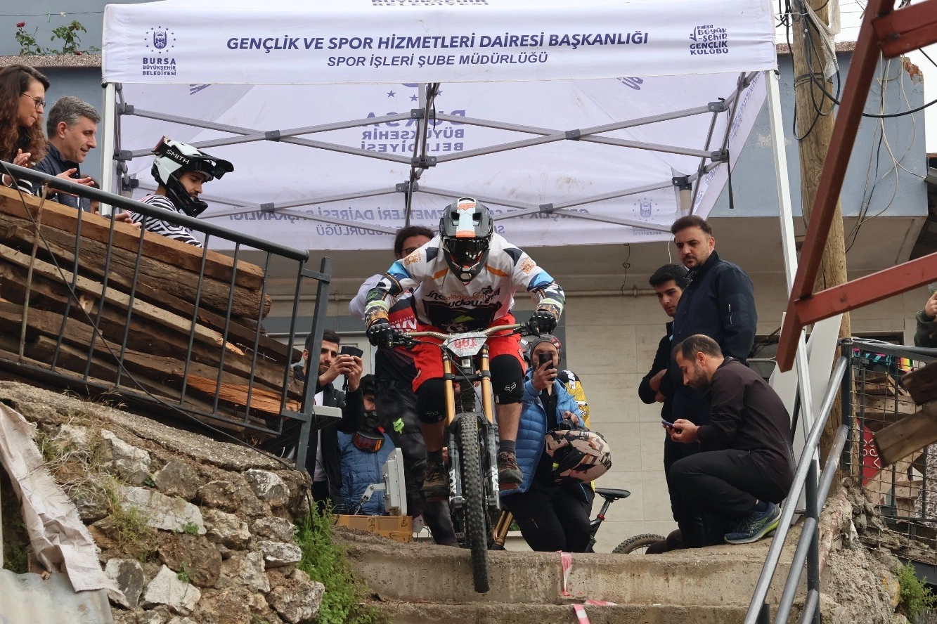 Bursa Büyükşehir Belediyesi tarafından düzenlenen Bursa Uluslararası Spor Festivali kapsamında yapılan extrem bisiklet yarışı izleyenlere adrenalin dolu anlar yaşattı. Bursa Valiliği ve Bursa Büyükşehir Belediyesi öncülüğünde Gençlik ve Spor İl Müdürlüğü, İl Milli Eğitim Müdürlüğü, Bursa Kent Konseyi ve Bursa Büyükşehir Belediyespor Kulübü iş birliğinde düzenlenen Bursa Uluslararası Spor Festivali, 17 ilçede devam eden spor etkinlikleriyle dolu dolu geçiyor. Doğa harikası parkurlara sahip olan Bursa, festival kapsamında yapılan Türkiye’nin ilk extrem bisiklet yarışı ‘Urban Downhill Yarışı’na (Şehir içi iniş) ev sahipliği yaptı. Mollafenari Mahallesi’nden başlayarak Tarihi Pınarbaşı Parkı’nda sona eren zorlu parkurda yarışmacılar, zamana karşı mücadele etti. Dar sokakları, dik merdivenleri ve keskin virajları hız kesmeden inen sporcular, Bursalılara adrenalin dolu anlar yaşattı. Merdivenlerden ve virajlardan teknik beceri ve cesaretlerini kullanarak ustalıkla dönen sporcular, izleyenlere unutulmaz anlar yaşattı. Gün boyu Bursa’nın tarihi sokaklarında tarih yazan bisikletçiler, yarışma sonunda Bursalılardan alkış aldı. Yarışmanın sonunda elitler kategorisinde Peter Bethell birinci, Emir Melik Peker ikinci, Ege Ürer ise üçüncü olurken, master kategorisinde birinci Fehmi Gürkan, ikinci Adam Lee, üçüncü ise Sinan Demir oldu.
