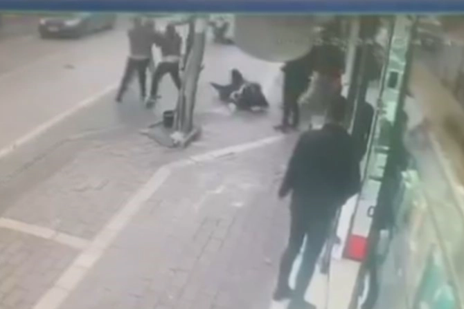 Olay, merkez Osmangazi ilçesi Çarşamba Mahallesi’nde meydana geldi. İddiaya göre, alacak-verecek meselesi nedeniyle cadde üzerinde karşılaşan iki grup sözlü tartışmaya başladı. Kısa sürede büyüyen tartışma yerini kavgaya bırakınca tekme ve yumruklar havada uçuştu. Tarafları çevredekiler güçlükle ayırırken, kavga anı bir işyerine ait güvenlik kamerasına yansıdı