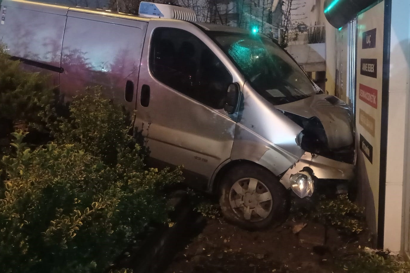 Kaza, merkez Yıldırım ilçesi Bağlaraltı Mahallesi 308. Sokak'ta meydana geldi. Edinilen bilgiye göre, Zafer D. idaresindeki 16 AC 5214 plakalı hafif ticari araç, Erdoğan K. yönetimindeki 16 AUV 407 plakalı otomobil ile kafa kafaya çarpıştı. Çarpışmanın etkisiyle hafif ticari araç yoldan çıkarak bir eczanenin bahçesine daldı. Yaşanan kazada sürücüler yaralandı. İhbar üzerine olay yerine polis ve sağlık ekibi sevk edildi. Yaralılar, olay yerinde yapılan ilk müdahalelerinin ardından Yüksek İhtisas Eğitim ve Araştırma Hastanesi'ne kaldırıldı. Kaza anı ise bir iş yerinin güvenlik kamerasınca saniye saniye kaydedildi. Kazayla ilgili inceleme başlatıldı.
