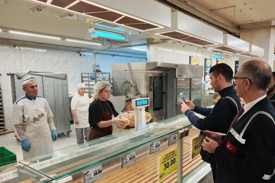 Bursa’da market raflarındaki fiyat etiketlerini kontrol eden ekipler, kasalarda ise fiş ile fiyat karşılaştırması yaptı. Ekmeğin gramajından, ürünlerin son kullanma tarihine kadar kontrol yapan ekipler, her ürünü tek tek inceledi. Raflarda fiyat etiketi olmayan ürün ile etiket ve kasa fiyatında uyuşmazlık varsa her bir aykırılık için 3 bin 166 lira idari para cezası uygulandı.