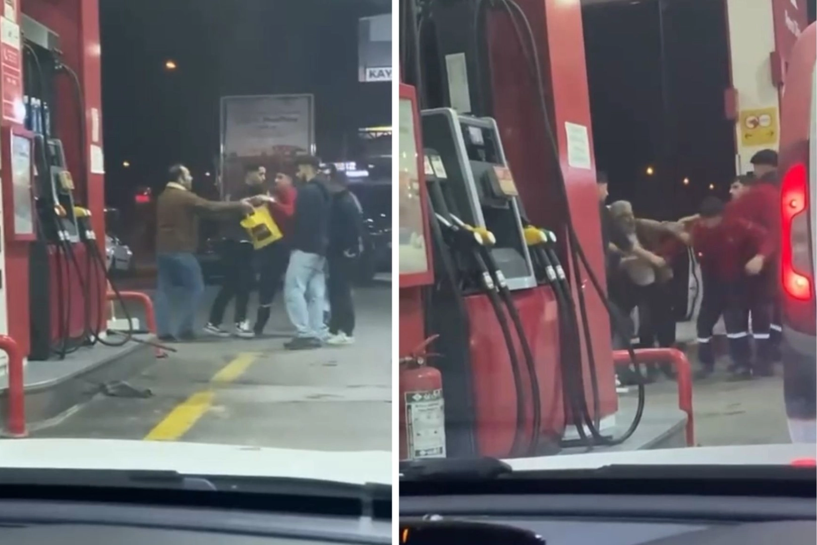 Olay, merkez Osmangazi ilçesi Mudanya Bulvarı üzerinde benzin istasyonunda meydana geldi. Bir sürücü, aracına yakıt almak için istasyona yanaştı. Bir süre sonra henüz bilinmeyen bir sebepten dolayı pompacı ile araç sürücüsü arasında sözlü tartışma çıktı. Sözlü tartışma kısa sürede kavgaya döndü. Kavgayı gören vatandaşlar duruma el atarken, ihbar üzerine olay yerine gelen polis ekipleri kavgayı ayırdı. Benzin istasyonunun ringe döndüğü anlar saniye saniye amatör kameraya yansıdı.
