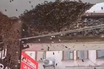 Bursa'da şehir merkezindeki bir iş hanını basan arılar, çalışanları esir aldı. Öğle saatlerinde biranda iş merkezinin girişindeki kepenge toplanan arılar, esnafa da vatandaşa da korku dolu anlar yaşattı. Kimi umursamadan iş merkezine girerken, kimisi ise yolunu değiştirdi. Esnafın bilgi vermesi üzerine olay yerine gelen arıcılıkla uğraşan ekipler, ilk önce kutunun içine aldığı arıları sonrasında ise peteklerin bulunduğu sandığa aldı. Arıları büyük bir soğuk kanlılıkla alan kişiler, esnafa ve vatandaşa da rahat nefes aldırdı. Muhtemelen çevrede bulunan bir koloniden arıların gelebileceğini belirten Hüseyin Savcı, "Uludağ'ın eteklerinden de gelebilir. Haber verdikleri gibi buraya geldik. Zararsız arılar bunlar. Koloniyi ilk önce kutuya indirdik. Bal arısı bunlar" diye konuştu. Ehet Taştan ise, "Vatandaşlara zarar vermemesi için kısa sürede buraya geldik. Buraya yuva yapmasının sebebi, oğulun içeride kraliçe vermesinden kaynaklı. 2 tane olan kraliçe kavga ettiği zaman biri kovandan ayrılıyor. Ayrılanda buraya gelmiş. En yakın bölge olarak burayı görmüş. Kimse arı gördüğü zaman arılara el sallamasın. Çünkü onlar el salladığınız zaman size saldırır" dedi.
