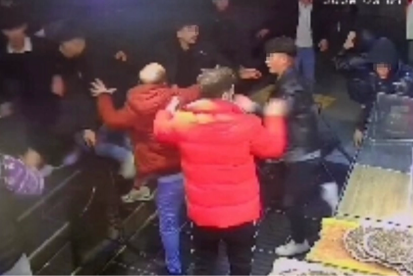 Bursa'nın Osmangazi ilçesi Çarşamba Mahallesinde bir grup genç ile esnaf tartışmaya başladı. Tartışmanın kısa sürede büyümesiyle öfkeli taraflar bir anda birbirine vurmaya başladı. Kavgaya taraflarında girmesiyle sandalye ve masalar havada uçuşurken, saldırganların biri kavgayı bahane edip tezgahtaki ürünleri çaldı. 2 kişinin hafif yaralandığı kavga anı kameraya yansırken, polis ekiplerinin gelmesiyle kavga son buldu.