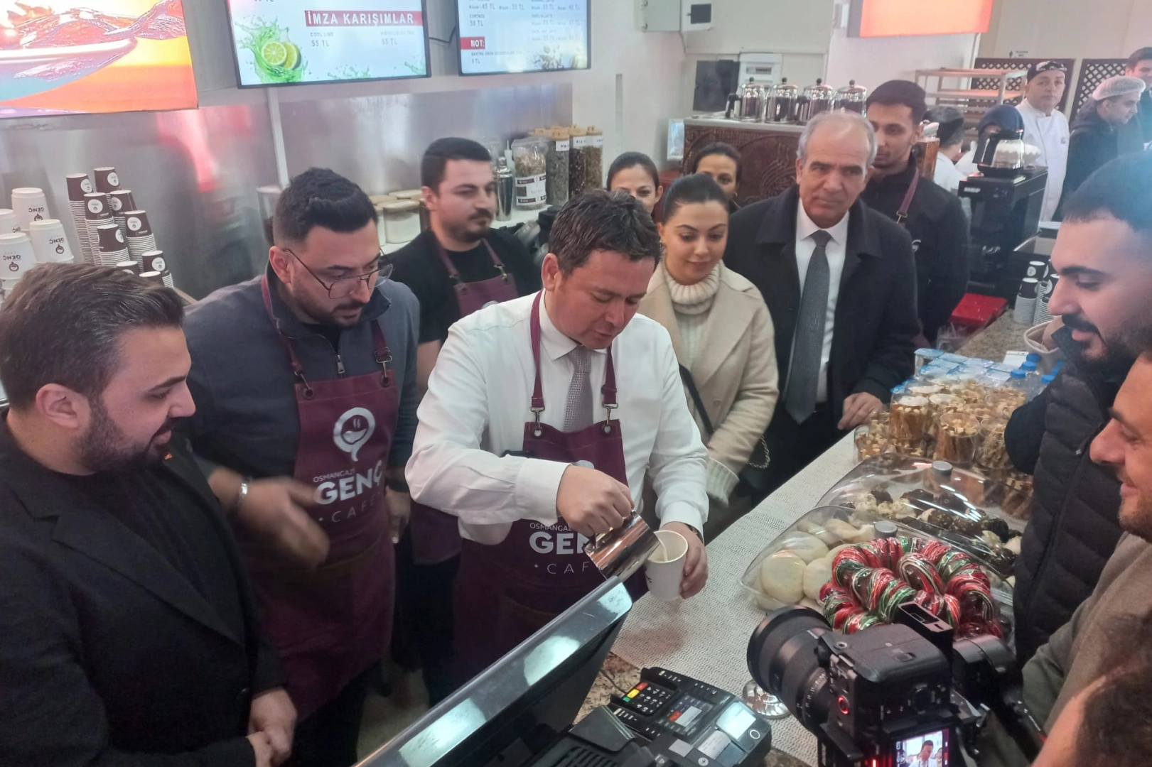 Kurdele töreninin ardından Osmangazi Belediye Başkanı Aydın, Genç Cafe'de baristalığa geçerek kahve dağıttı.Kent Lokantası'nda ise yemek dağıtımı yaptı.