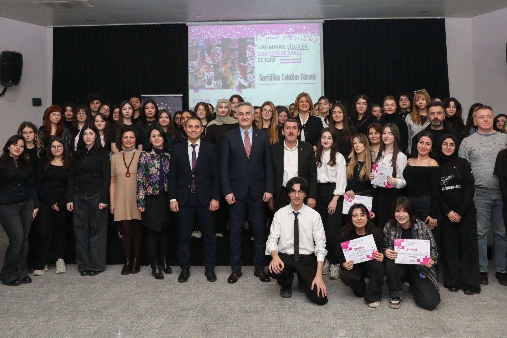 Bursa Büyükşehir Belediyesi’nin “Fark Et, Oyna, Dönüştür” temasıyla hayata geçirdiği ‘Kırılmayan Çizgiler’ dijital sergisi, lise öğrencilerinin sanatsal üretimleriyle kadına yönelik şiddete karşı güçlü bir farkındalık mesajı verdi.