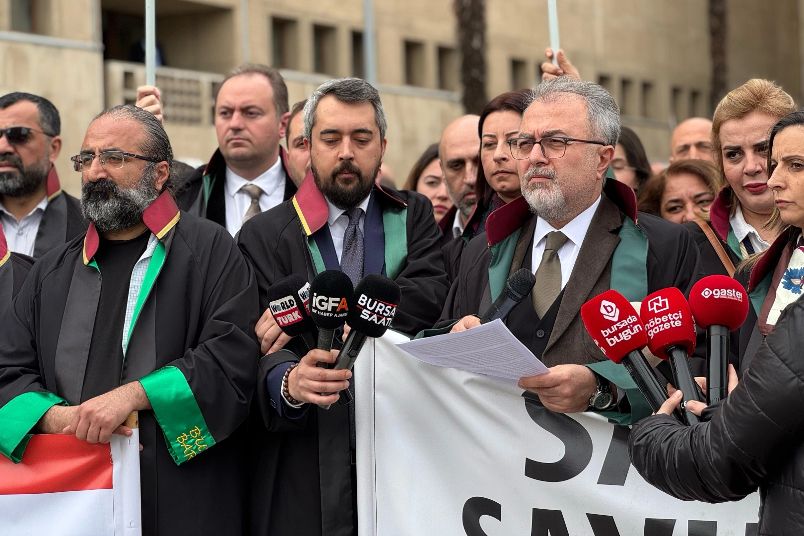 Metin Öztosun, açıklamasında sadece Bursa’daki gelişmelere değil, ülke genelinde yaşanan hukuk dışı uygulamalara da dikkat çekti. İstanbul Barosu yöneticilerine açılan dava, İstanbul Büyükşehir Belediye Başkanı Ekrem İmamoğlu ve diğer yerel yöneticilere yönelik soruşturmalar, gizli tanık beyanlarıyla yürütülen süreçler, Anayasa Mahkemesi kararlarının uygulanmaması, Gezi Davası ve Can Atalay örnekleri üzerinden yargının siyasallaşmasına yönelik eleştiriler sıralandı.