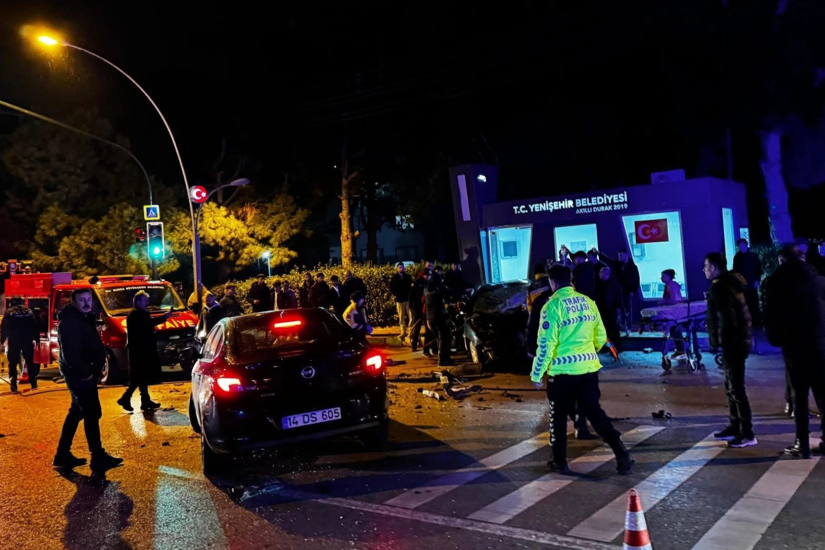 Edinilen bilgiye göre, İznik Caddesi üzerinde süratli oldukları iddia edilen iki otomobil, kavşakta kafa kafaya çarpıştı. Ortalığı savaş alanına çeviren kazada 2 sürücü yaralandı. Vatandaşlar yaralılara yardım etmek için zamanla yarıştı. Olay yerine gelen 112 Acil Servis ekiplerinin ilk müdahalesinin ardından yaralı sürücüler, hastaneye kaldırıldı. Olayla ilgili polis ekiplerinin tahkikatı sürüyor.