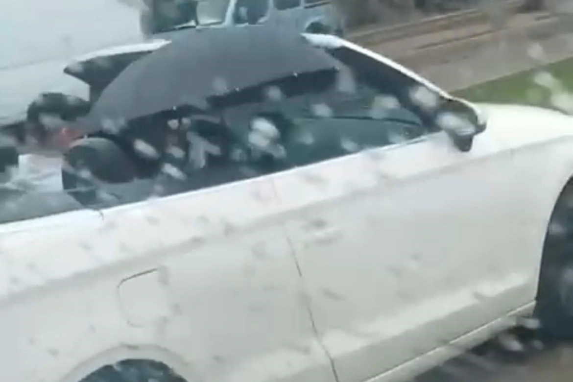 Bursa'nın merkez Nilüfer ilçesinde seyir halinde olan sürücü aracının açılır tavanını kapatamayınca yan koltukta oturan arkadaşı yağmurdan korunmak için farklı bir yönteme başvurdu. Şemsiye açarak seyahat eden sürücü ve arkadaşı, yoldan geçen diğer sürücüler ve yayalar tarafından şaşkınlıkla izlendi. Bazı vatandaşlar, sürücünün bu cesur ve eğlenceli hareketine gülerek tepki verirken, kimisi de o anları cep telefonu kamerasıyla kayda aldı.