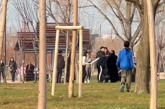 Olay, dün Yıldırım ilçesi Anadolu Mahallesi'ndeki Gökdere Millet Bahçesi'nde meydana geldi. Güneşli havayı fırsat bilen vatandaşlar, parklara akın etti. Mangalcıların yanı sıra cağ döneri yapanlar da parklardaki yerini aldı. Öğle saatlerinde mangal dumanı sebebiyle çıktığı iddia edilen iki ayrı kadın grubunun tartışması bir anda kavgaya dönüştü. Çevredekiler müdahale etse de kadınları ayırmak bir türlü mümkün olmadı. Kadınların birbirine döner bıçağı çektiği kavgayı ayırmaya gelen parkın güvenlik görevlilerinden Mücahit Tilci (46) bacağına aldığı döner bıçağı darbesiyle yaralandı. İhbar üzerine olay yerine gelen 112 Acil Servis ekipleri, Tilci'yi ambulansla Yüksek İhtisas Eğitim ve Araştırma Hastanesine kaldırdı. Yaralının hayati tehlikesi bulunmazken, polis ekipleri kaçan şüpheliyi yakalamak için çalışma başlattı. Öte yandan, güvenlik görevlisinin yaralandığı döner bıçaklı kadın kavgasının ortaya çıkan görüntüleri izleyenleri dehşete düşürdü. Japon samurayları aratmayan döner bıçaklı kadınlar hakkında polis tahkikat başlattı.