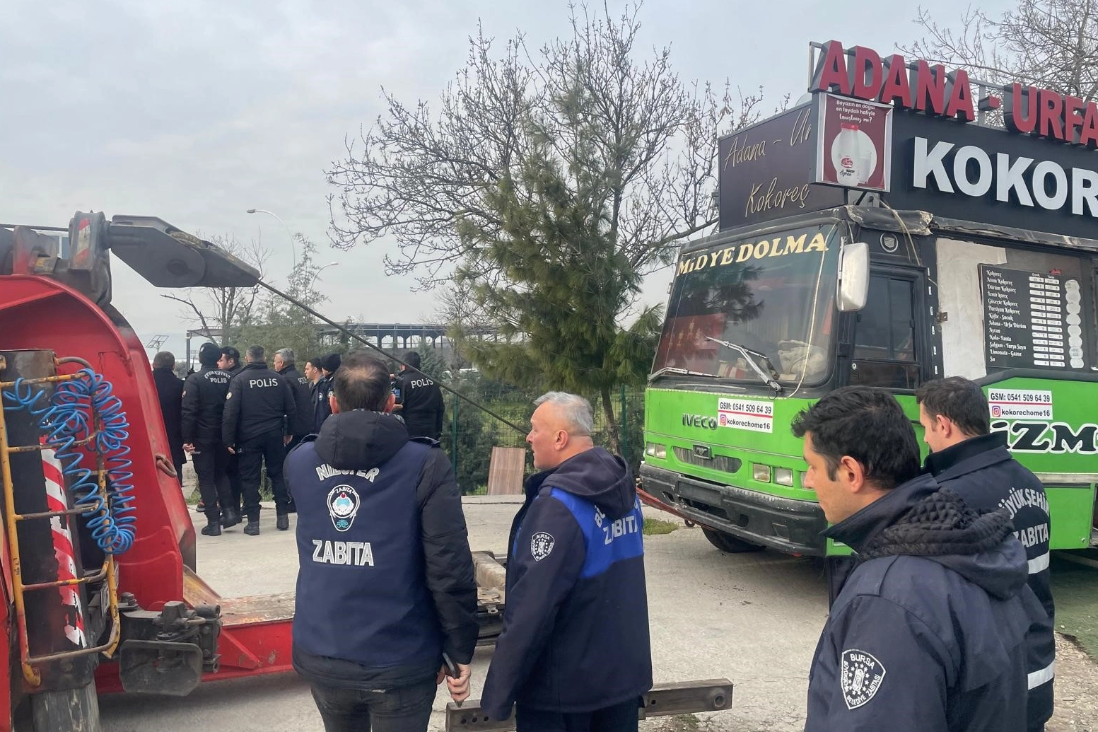 Bursa'nın Nilüfer ilçesinde büyükşehir ve ilçe zabıta müdürlüğü ekipleri, kokoreç, sucuk ve kebap gibi yemeklerle hem tüketici sağlığını tehdit eden hem de çevre ve görüntü kirliliğine yol açan minibüsleri polis desteğiyle kaldırdı. Kebapta ne eti kullandıkları bilinmeyen, sucuk ve kokoreç gibi ciddi sağlık sorunlarına yol açabilecek ürünleri denetimsiz tüketiciye sunan, vergi ve kira ücreti ödemedikleri için haksız rekabete yol açan "lokanta minibüs"ler için Bursa Büyükşehir ve Nilüfer belediyeleri ortak harekete geçti. 23 Nisan Mahallesi kavşağında bugüne kadar birçok kez uyarılan minibüslerin sahipleri, kendilerine gösterilen yerlere gitmeyince zabıta ekipleri, sabah saatlerinde onlarca polisin desteğiyle operasyona başladı. Sahiplerinin direnmelerine ve gerginlik yaşanmasına rağmen ekipler, çekiciler yardımıyla birbirine yakın iki noktada bulunan minibüsleri kaldırdı. Zabıta görevlileri, bugüne kadar birçok kez uyardıklarını, kendilerine Nilüfer'deki pazar yerlerinde ücretsiz yer vermelerine rağmen kaldırım işgalini sürdürdüklerini belirterek, "23 Nisan Mahallesi'nde bu konuda çok şikayet aldık. Çevreye yayılan kötü koku, görüntü kirliliği, halk sağlığını tehdit gibi birçok olumsuzluk barındıran bu kaldırım işgali lokanta minibüslere izin vermeyeceğiz. Halk ve çevre sağlığı için, temiz Nilüfer ve temiz Bursa için çalışmalarımız sürecek" dedi. Genellikle akşam ve gece saatlerinde açık olan bu yerler, kokoreç, sucuk ekmek, kebap gibi et ürünlerini ızgarada yaparak sunuyor. Bütün lokanta ve restoranlar denetimden geçerken bu yerler ne kullandığı bilinmeyen ürünlerle gıda zehirlenmelerine yol açabilecek riskler barındırıyor.