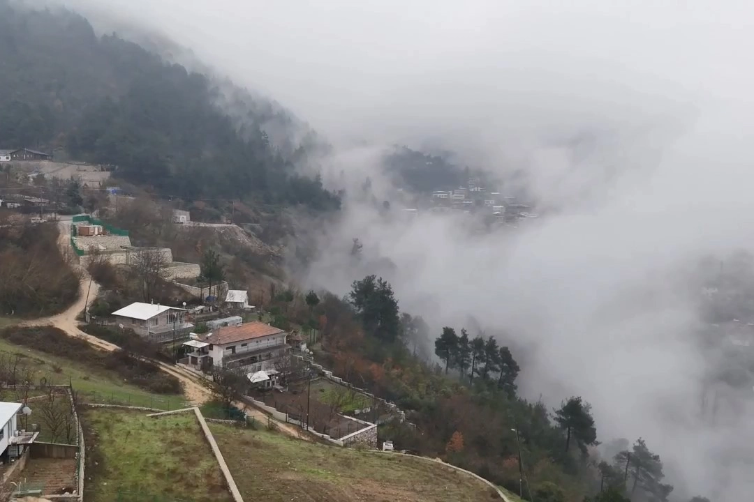 Bursa'da yüksek rakımdan dolayı bulutların içerisinde kalan Gökçeören Mahallesi adeta Trabzon yaylalarını andırdı.