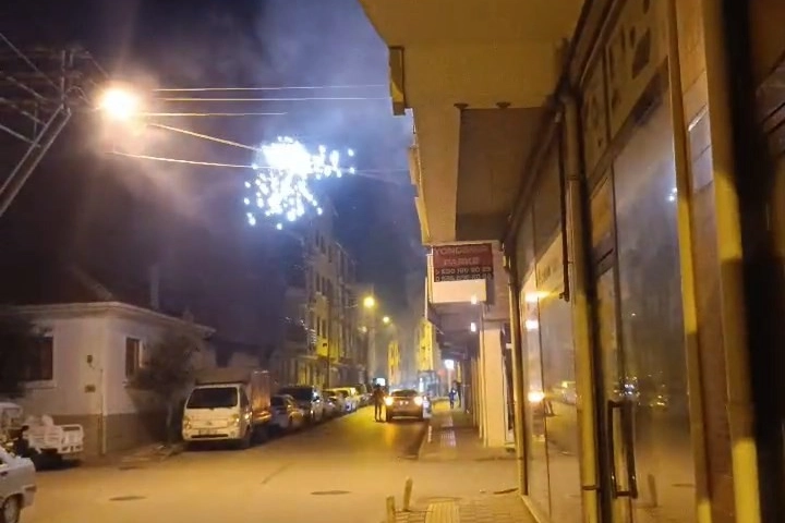 Bursa'nın Karacabey ilçesinde gece saatlerinde gerçekleşen olayda, kıvılcımların etkisi sokak adeta gündüz gibi aydınlattı. Evlerin çok yakınında gerçekleşen olayda mahalle sakinleri de panik yaşadı. Patlama sesi de çıkaran elektrik telleri için ilgili ekiplere bilgi verilirken, yaşanan korku dolu anlar vatandaşın cep telefonu kamerasına yansıdı.
