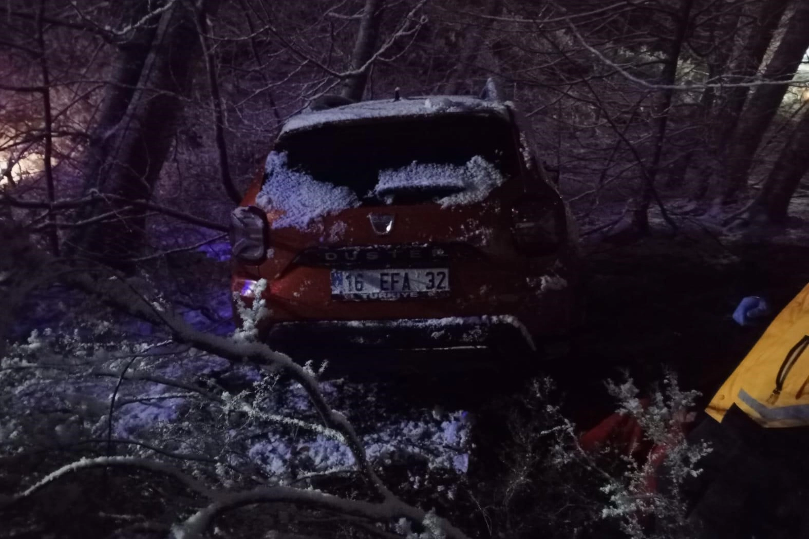 Kaza, Mustafakemalpaşa ilçesi Suuçtu Şelalesi mevkiinde meydana geldi. Edinilen bilgiye göre, Mehmet A. (33) idaresindeki 16 EFA 32 plakalı otomobil, yoğun kar yağışı sebebiyle sürücüsünün kontrolünden çıkarak şarampole yuvarlandı. Kazayı gören vatandaşlar durumu 112 Acil Servis Hattı'na bildirdi. İhbar üzerine olay yerine sağlık ve jandarma ekibi sevk edildi. Kazada Mehmet A., Ayşegül A. (28), Tarık Mete A. (2), Özgül K. (56) ve Mustafa K. (56) yaralandı. Yaralılar, olay yerinde yapılan ilk müdahalelerinin ardından hastaneye sevk edildi. Yaralılardan Mustafa K.'nin durumunun ağır olduğu öğrenildi. Jandarma kaza ile ilgili soruşturma başlattı.