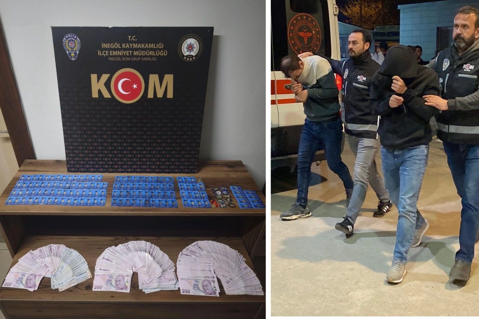 Dolandırıcılık olayı İnegöl ilçesi kuyumcular çarşısında faaliyet gösteren bir kuyumcuda meydana geldi. 2 şüpheli girdikleri kuyumcuya 2 tane gerçek altını bozdurmak için gösterdiler. Altınların gerçek olduğunu gören tespit eden kuyumcu altınları aldı. Şüpheliler, saniyeler sonra sahte olan 40 adet gram altını da kuyumcuya sattılar. Bozdurdukları altınlardan elde ettikleri yaklaşık 200 bin TL'yi alan şüpheliler işyerinden çıkarak hızla uzaklaştılar. Bir süre sonra aldığı altınları tek tek inceleyen kuyumcu, altınların sahte olduğunu görünce polise haber verdi. Bursa İl Emniyet Müdürlüğü Kaçakçılık ve Organize Suçlarla Mücadele Büro Amirliği ekipleri, harekete geçti. Kamera görüntülerinden şahısları tespit eden KOM ekipleri, şüphelileri Bursa da yakaladı. Şüpheliler H.İ.K(37) ve E.S.(25) Bursa İl Merkezinde yakalanıp gözaltına alındılar. Şüpheli şahısların Bursa'nın İnegöl, Bilecik'in Bozüyük, Kütahya'nın Emet ve Tavşanlı ilçelerinde 4 müştekiye her biri 1'er gramlık toplamda 129 adet sahte altın vererek dolandırdıkları tespit edildi. Şahısların aracında yapılan aramada 76 adet 1'er gramlık sahte altın, 10 adet 1'er gramlık gerçek altın, 7 adet gerçek Cumhuriyet altını, 143 bin lira nakit ele geçirildi. Şüpheliler H.İ.K. ve E.S., ifadelerinin ardından İnegöl Adliyesine sevk edildiler.