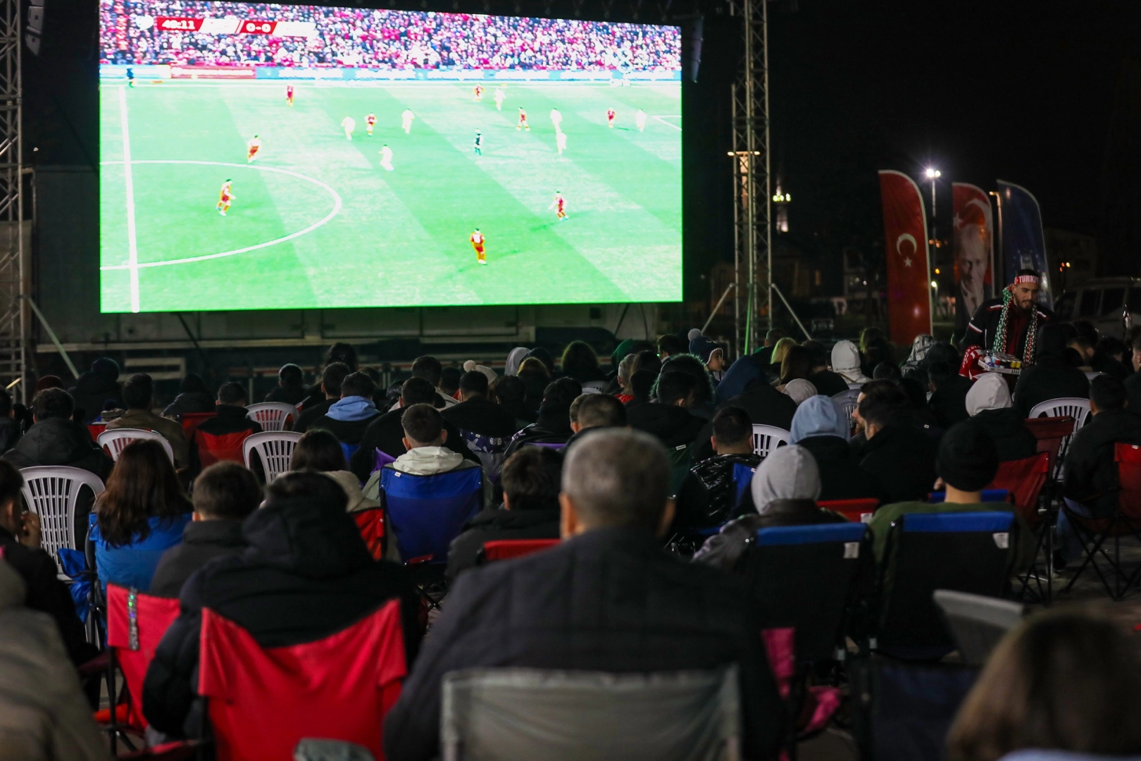 Bursa Büyükşehir Belediyesi, A Milli Futbol Takımı’nın Dünya Kupası Play-Off Yarı Final eşleşmesinde Romanya ile oynadığı karşılaşmayı Hüdavendigar Kent Parkı ve Görükle Gençlik Merkezi’nde kurduğu dev ekranlarda Bursalılarla buluşturdu. Yüzlerce kişi, ellerinde Türk bayraklarıyla maçı büyük bir coşkuyla takip etti.