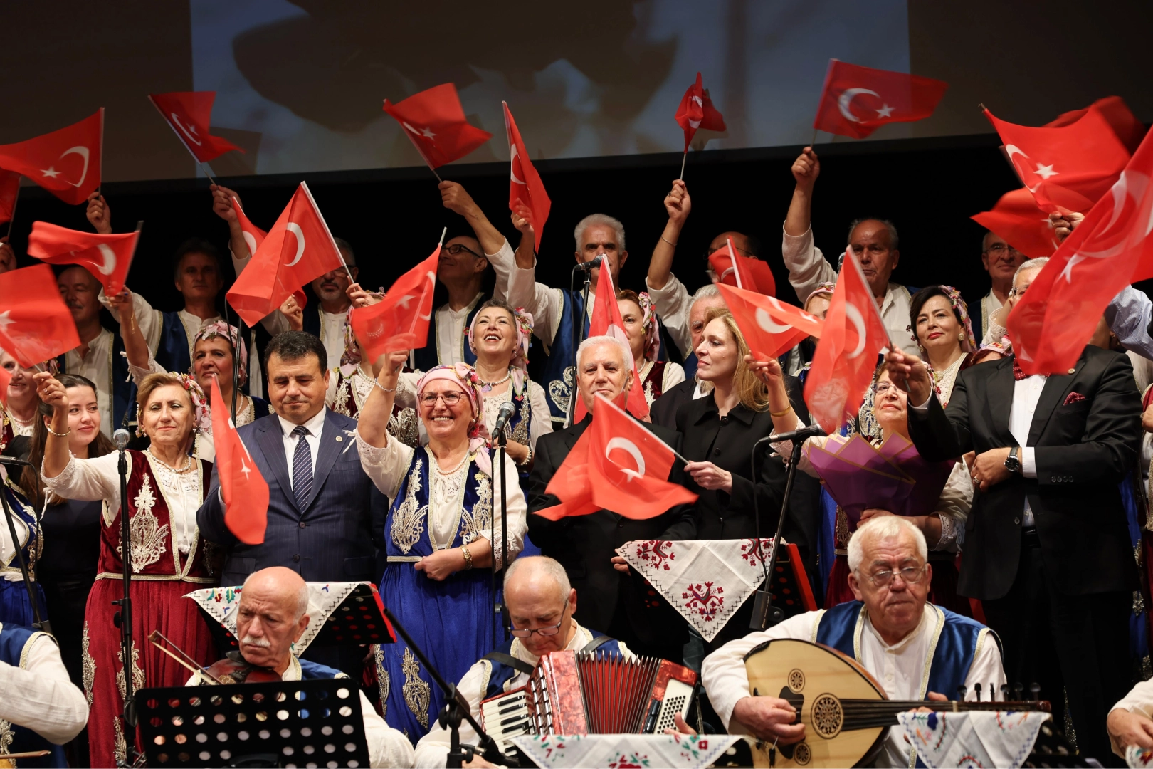 Gecede sahne alan Hafize Beysim Gün Korosu, Ulu Önder Gazi Mustafa Kemal Atatürk’ün sevdiği Rumeli ve Balkan türkülerini seslendirerek dinleyenlere duygusal anlar yaşattı. Gecenin sonunda sahneye çıkarak bağlama çalan Başkan Mustafa Bozbey, salonu dolduranlara büyük sürpriz yaşattı. Koroyla birlikte ‘Yeşil Ördek’ türküsünü de seslendiren Başkan Mustafa Bozbey, dinleyenlerden büyük alkış aldı.
