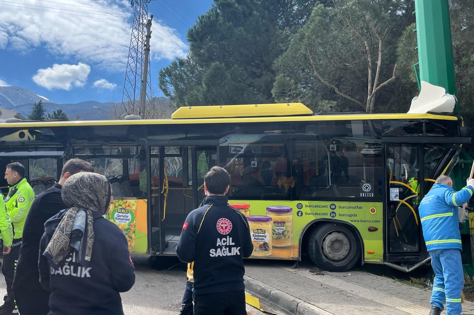 Alınan bilgiye göre, Heykel Siteler hattında çalışan S2 numaralı belediye otobüsü Kaplıkaya Siteler Mahallesi Kanuni Cadde üzerinde frenlerinin boşalması sonucu önce önündeki bir otomobile ardından da karşı yöne geçip bir direğe çarparak durabildi.