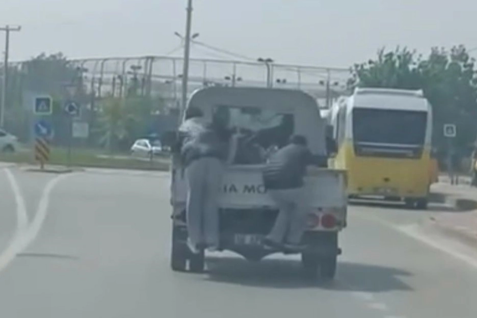 Olay, Gürsu ilçesinde meydana geldi. Canlarını hiçe sayan 2 genç, kasalı kamyonetin arkasına tutunarak ilerlemeye başladı. O anları gören diğer sürücüler, kamyonet sürücüsünü korna ile uyarsa da sonuç alamadı. Çocukların tehlikeli oyunu, saniye saniye amatör kamera ile kaydedildi.