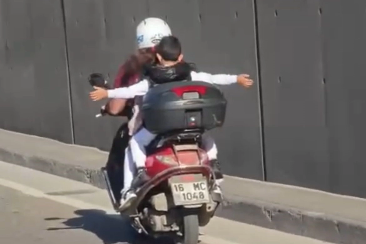 Olay, Yıldırım ilçesi Erikli mevki Ankara Yolu Caddesi üzerinde meydana geldi. Edinilen bilgiye göre, trafiğe çıkan adam, arkasına herhangi bir ekipman bulundurmadan aldığı iki çocukla trafiğe çıktı. Sürücü seyir halindeyken, arkasındaki çocuklar ise bulunduğu durumu oyuna çevirip ellerini açarak yolculuk etti. Tehlikeli yolculuk kilometrelerce sürerken, o anlar trafikteki başka sürücülerin kamerasına yansıdı.
