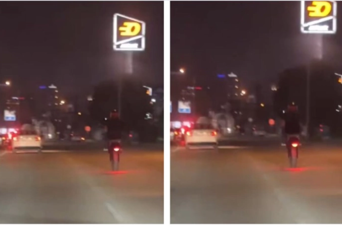 Bursa’nın Nilüfer ilçesi Beşevler mevkii İzmir-Ankara yolu üzerinde ilerleyen bir motosiklet sürücü tek teker yaprak metrelerce ilerledi. Kazaya davetiye çıkaran sürücü kameraya yansırken, sürücünün duyarsız hareketleri diğer sürücülerinde dikkatini çekti. Sürücünün ne kendi ne de başkalarını düşünerek ilerlediği o anlar cep telefonu kamerasıyla kayda alındı. Trafik ekipleri de sosyal medyadaki görüntüler üzerine soruşturma başlattı.