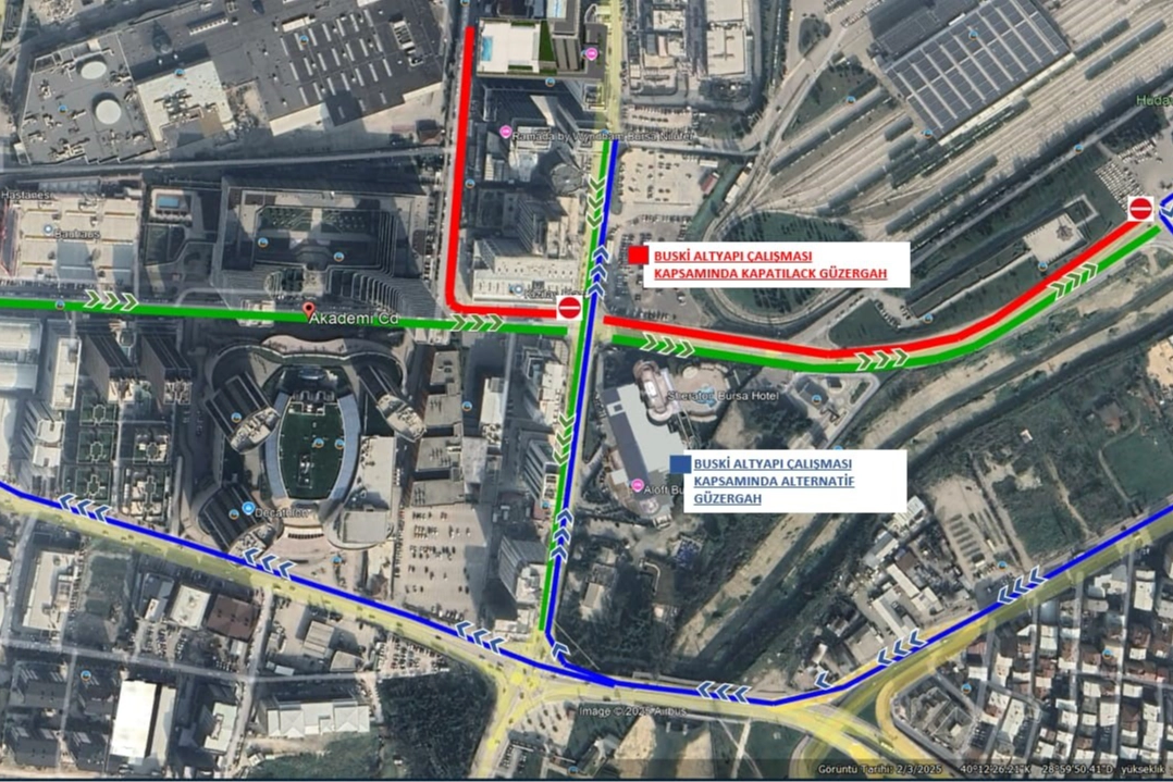 BUSKİ Genel Müdürlüğü tarafından yapılan açıklamada şu cümlelere yer verildi; "BUSKİ Genel Müdürlüğü Kanalizasyon Dairesi Başkanlığı tarafından yapılacak çalışmalar çerçevesinde, Odunluk Mahallesi, Akademi Caddesi 18 Temmuz 2025 - 14 Ağustos 2025 tarihleri arasında trafik akışına kapatılarak, mevcut trafik akışı ekte belirtilen krokideki alternatif güzergahlardan sağlanacaktır. Çalışmalar süresince sürücülerin trafik işaret ve işaretçilerine uymaları gerekmektedir."