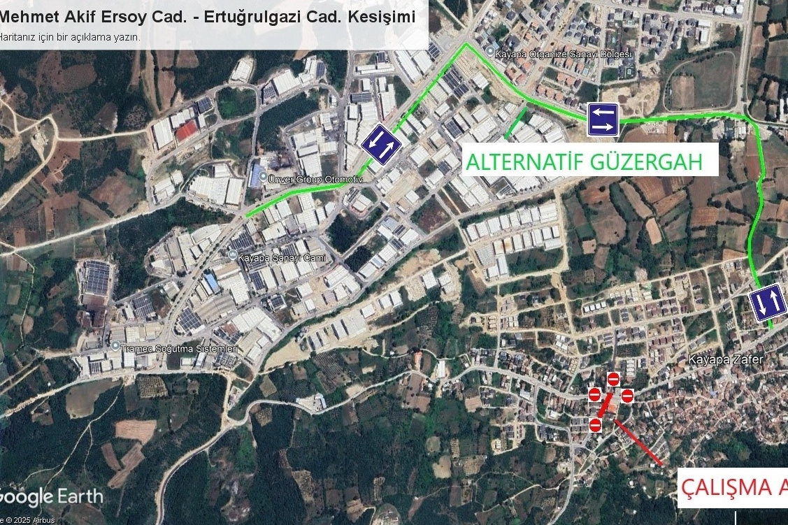 BUSKİ Genel Müdürlüğü tarafından yürütülen Bursa Çınarcık Su Projesi Çınarcık İsale Hattı İnşaatı çalışmaları kapsamında Nilüfer İlçesi Kayapa Mahallesinde Bursa-Balıkesir Yolu (Mehmet Akif Ersoy Caddesi) ile Ertuğrulgazi Caddesi kesişiminde isale hattı çalışması yapılacaktır. Bahsi geçen çalışmaların yürütülebilmesi için 05 Ağustos 2025-26 Ağustos 2025 tarihleri arasında Mehmet Akif Ersoy Caddesi araç trafiğine kapatılacaktır. Ulaşım alternatif güzergahtan sağlanacaktır. Mehmet Akif Ersoy Caddesi üzerindeki çalışmalar süresince araç sürücülerinin hız limitlerine uyarak kontrollü seyir etmeleri, çalışma yapılan güzergahlarda dikkatli ve duyarlı olmaları, trafik işaret ve işaretçilerine uymaları alternatif güzergahları kullanmaları gerekmektedir.