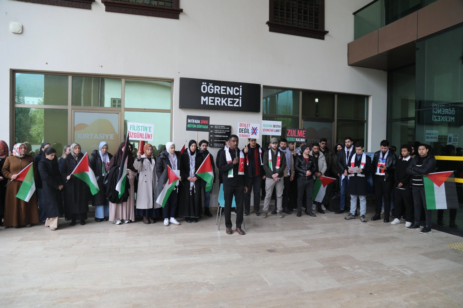 7 Ekim’in bir başlangıç tarihi değil, bir dönüm noktası olduğunu vurgulayan Ahmet Akif Şahin, bu tarihin, yıllardır süregelen sistematik işgale karşı Filistin halkının meşru müdafaa hakkını kullandığı tarih olduğunu söyledi. Bu süreçte dünyanın ikiyüzlülüğünü gösterdiğini, yürüyüş ve açıklama dışında bir adım atılmadığını vurgulayan Ahmet Akif Şahin, “Kimse bu soykırıma karşı aksiyon almadı. Vicdanlı insanlar olarak elimizden geleni yaptık, eylemlere katıldık, ancak koltuk sahibi insanlar çağrılarımıza kulak vermedi. Biz bir kez daha yüksek sesle haykırıyoruz. Öğrenciler olarak üzerimize düşen vazifeyi yerine getiriyoruz. Devletleri, uluslararası örgüt ve teşkilatları aksiyon almaya çağırıyoruz” diye konuştu.
