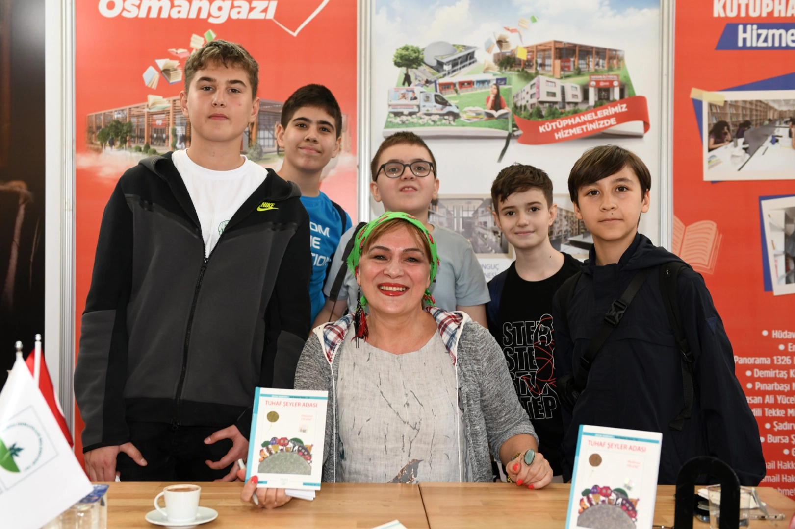Osmangazi Belediyesi, 22. Bursa Kitap Fuarı’nda düzenlediği imza günü etkinliklerinde kitapseverler ile yazarları buluşturmaya devam ediyor. Bursa Kitap Fuarı’nda açtığı stantta her gün birbirinden değerli edebiyatçıları konuk eden Osmangazi Belediyesi, son olarak yazar Halime Yıldız’ı ağırladı. Çocuk ve gençlere yönelik kaleme aldığı kitaplar ile zengin bir okuyucu kitlesine sahip olan Halime Yıldız’ın imza gününe özellikle küçük kitapseverlerin ilgisi büyük oldu. Osmangazi Belediyesi tarafından kendilerine armağan edilen Kertenkelime ve Tuhaf Şeyler Adası kitaplarını alarak sıraya giren öğrenciler, kitapların yazarı Halime Yıldız ile hem tanışmanın hem kitaplarını imzalatmanın mutluluğunu yaşadı.