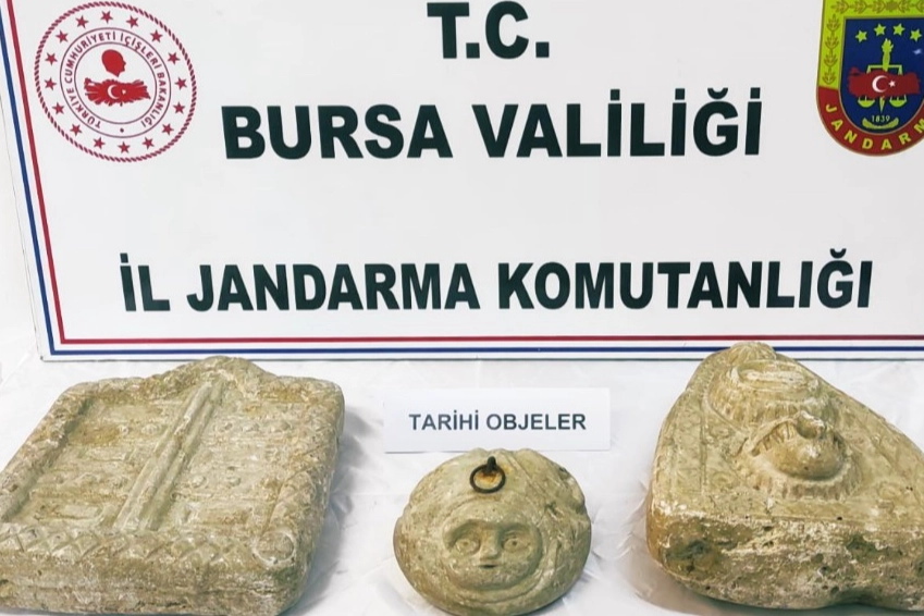 Gürsu İlçe Jandarma Komutanlığı ile İstihbarat Şube Müdürlüğü ekipleri tarafından Kumlukalan Mahallesi’nde şüpheli bir araç durduruldu. Cumhuriyet Savcılığı’ndan alınan arama kararına istinaden araçta yapılan aramada, tarihi eser niteliğinde olduğu değerlendirilen 3 adet obje ele geçirildi. Araçta bulunan N.L. ve M.K. isimli şahıslar gözaltına alındı. Şüpheliler, işlemlerinin ardından sevk edildikleri adli makamlarca adli kontrol şartıyla serbest bırakıldı. Olayla ilgili soruşturma sürüyor.