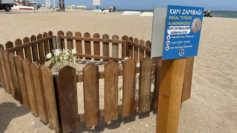 Dünya Doğa Koruma Birliği tarafından dünyada nadir rastlanması ve neslinin tükenme tehlikesi nedeniyle koruma altına alınan 'kum zambağı' (Pancratium maritimum), Bursa sahillerinin çeşitli bölgelerinde doğal şekilde yetişiyor. Özellikle Temmuz ve Ağustos aylarında çiçek açarak sahilleri süsleyen kum zambakları, Bursa Büyükşehir Belediyesi Park ve Bahçeler Dairesi Başkanlığı Sahil Planlama ve Yapım Şube Müdürlüğü ekipleri tarafından koruma altına alındı. Kum zambaklarının etrafını çitlerle çeviren ve uyarı levhaları koyan ekipler, sahillerin farklı noktalarına da bilgilendirici yazılar asarak nadide bitkilere karşı duyarlılığı arttırıyor. Yetkililer, koruma altındaki bitkileri koparmanın cezasının 387 bin 141 TL olduğunu da hatırlattı.