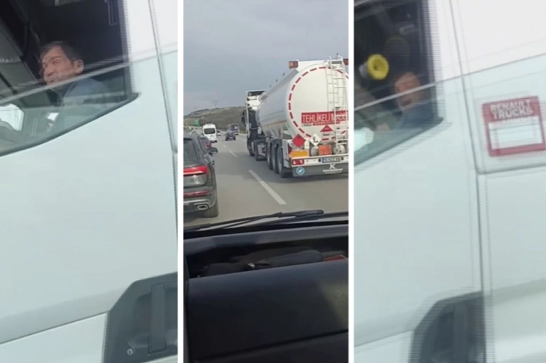 Olay, İstanbul-İzmir Otoyolunda meydana geldi. İddiaya göre yol verme meselesi nedeniyle seyir halindeki tırın sürücüsüyle, ticari aracın sürücüsü tartışmaya başladı. Ticari araç sürücüsünün arkadaşı tartıştığı tır şoförünü cep telefonu kamerasıyla kayda almaya başladı. Tartıştığı kişiler tarafından kendisinin kayda alındığı fark eden tır şoförü, araçta taşıdığı küllüğü, ticari aracın içine fırlattı. Kazaya davetiye çıkaran tartışma kameraya yansırken, kayıt yapan kişinin de tahrik edercesine şoföre, ‘Elindekini at, at' diyerek seslenmesi dikkatlerden kaçmadı.