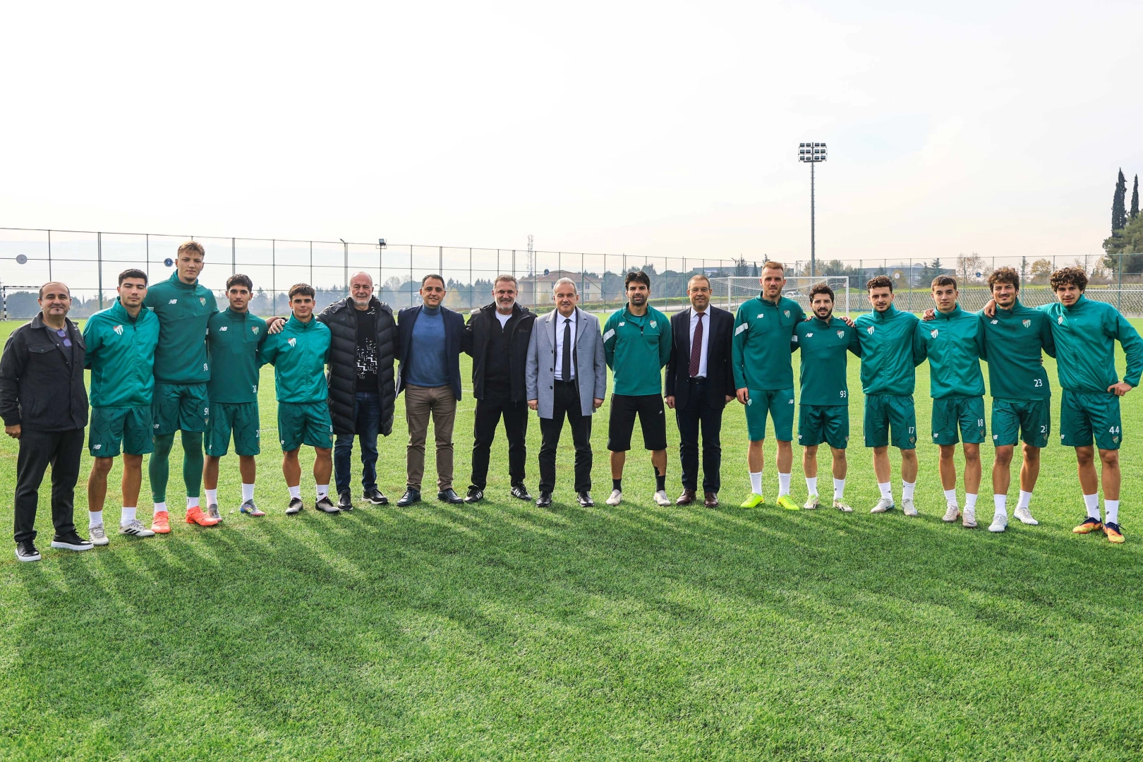 BUÜ Rektör Yardımcısı Prof. Dr. Cafer Çiftci, Üniversite Genel Sekreteri Mehmet Aydemir, SKS Daire Başkanı Erkan Suveydas, Spor Müdürü Mehmet Arslan ve üniversite yöneticileri, Bursasporlu teknik heyet ve futbolcularla bir araya geldi.