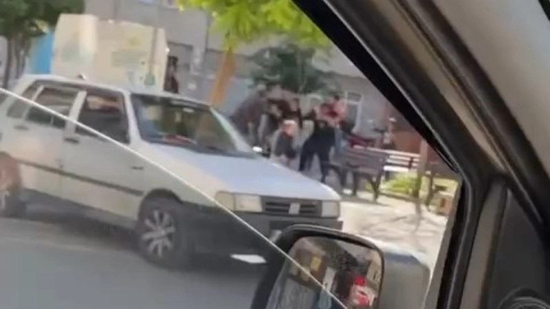 Kavga anı çevredekilerin araya girmesiyle son buldu. O anlar cep telefonu kamerasına yansıdı.